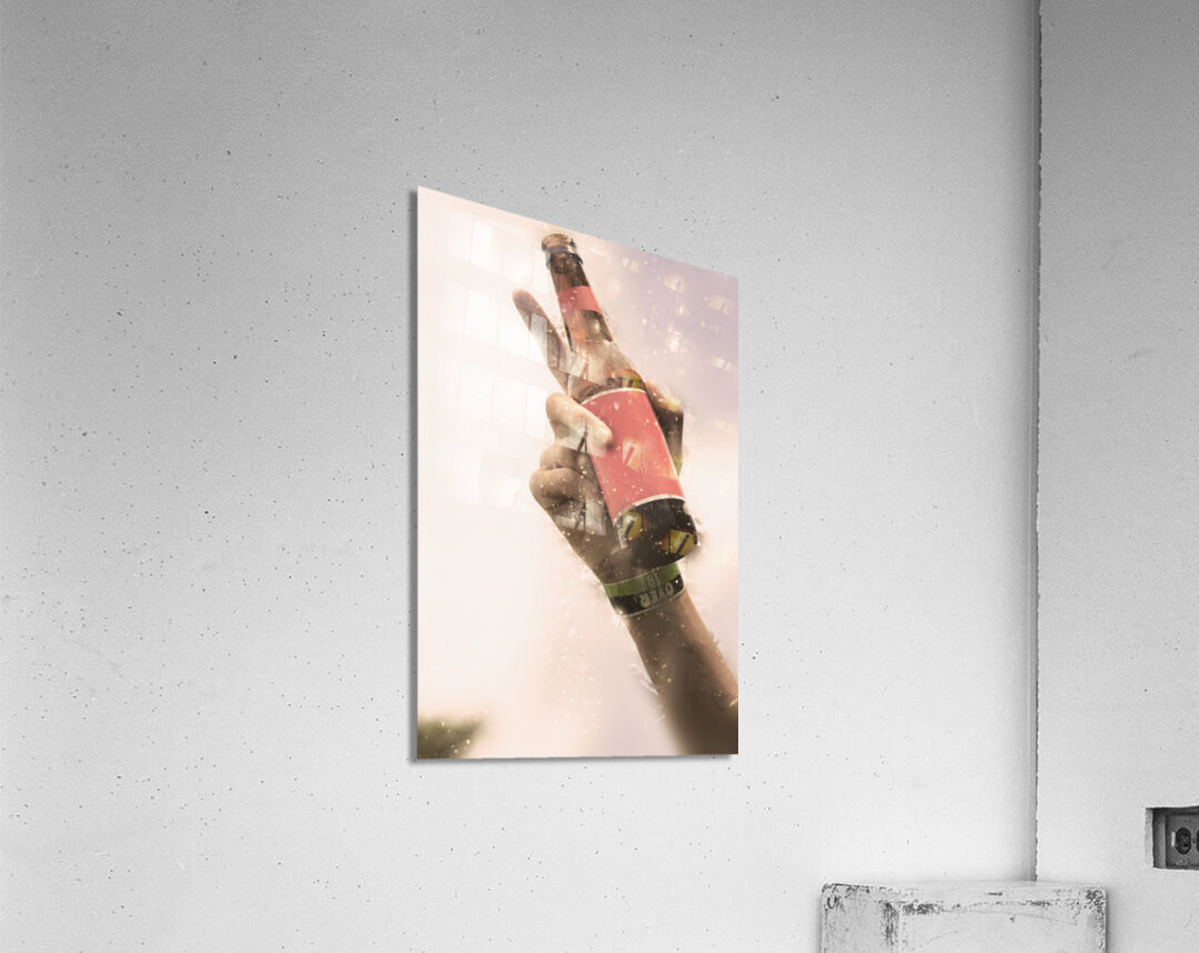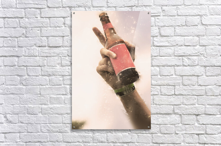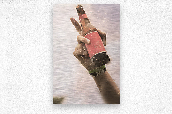 Photograph on the hand of an fan making a point with beer bottle in hand while in the crowd at an over 18s rock music concert. Salute to beer drinking...[+]