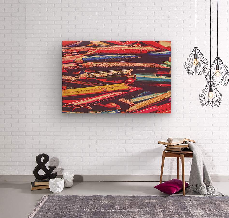 Ruinous reform in retro visual arts with shabby pencils lining a scene in colour production