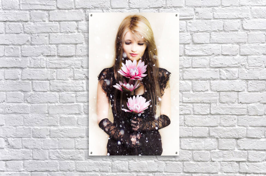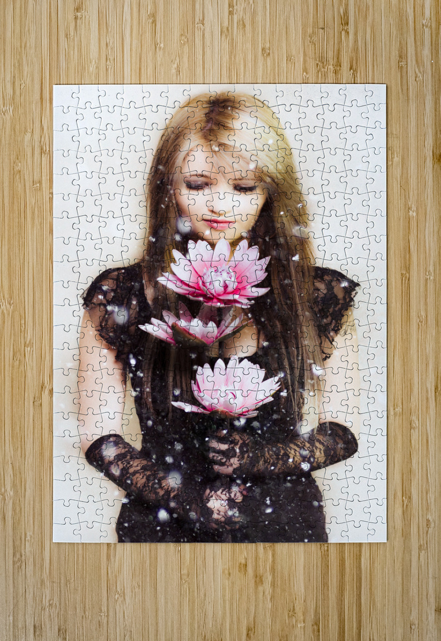 Beautiful young woman holding a delicate flower Jorgo Puzzle printing