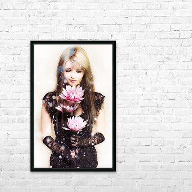 Beautiful young woman holding a delicate flower Frame print