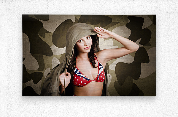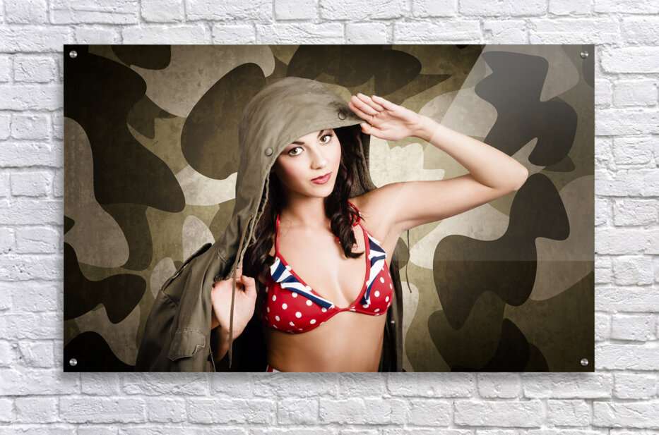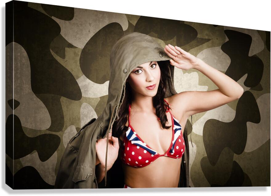ABOUT THIS ARTWORK: SEXY VINTAGE ARMY GIRL SALUTING