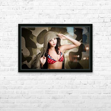 Sexy vintage army girl saluting Picture Frame Printing