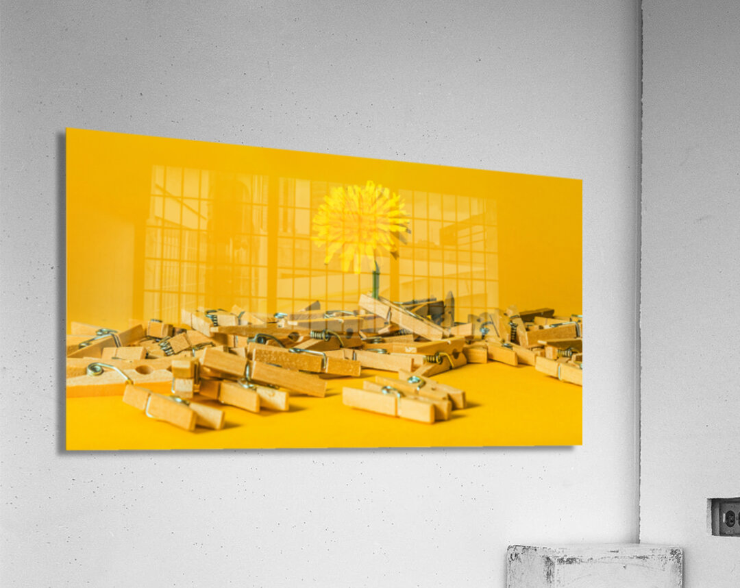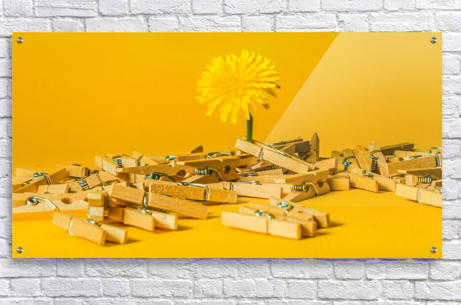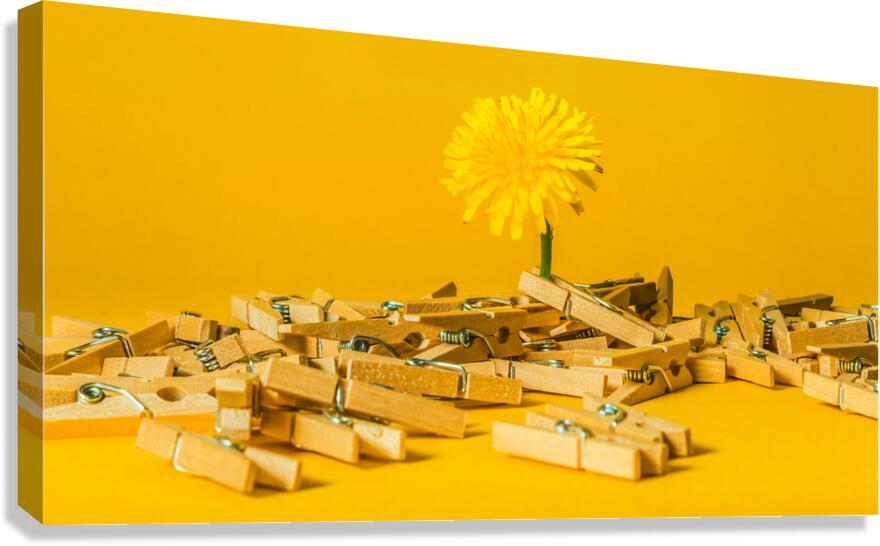 Fine art still life in a floral scene of bright blooms and clothespins. Spring clippings