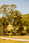 A wonderful scene of idyllic quietude with country road running beside typical Australian country ranch. Mt Perry Queensland Australia