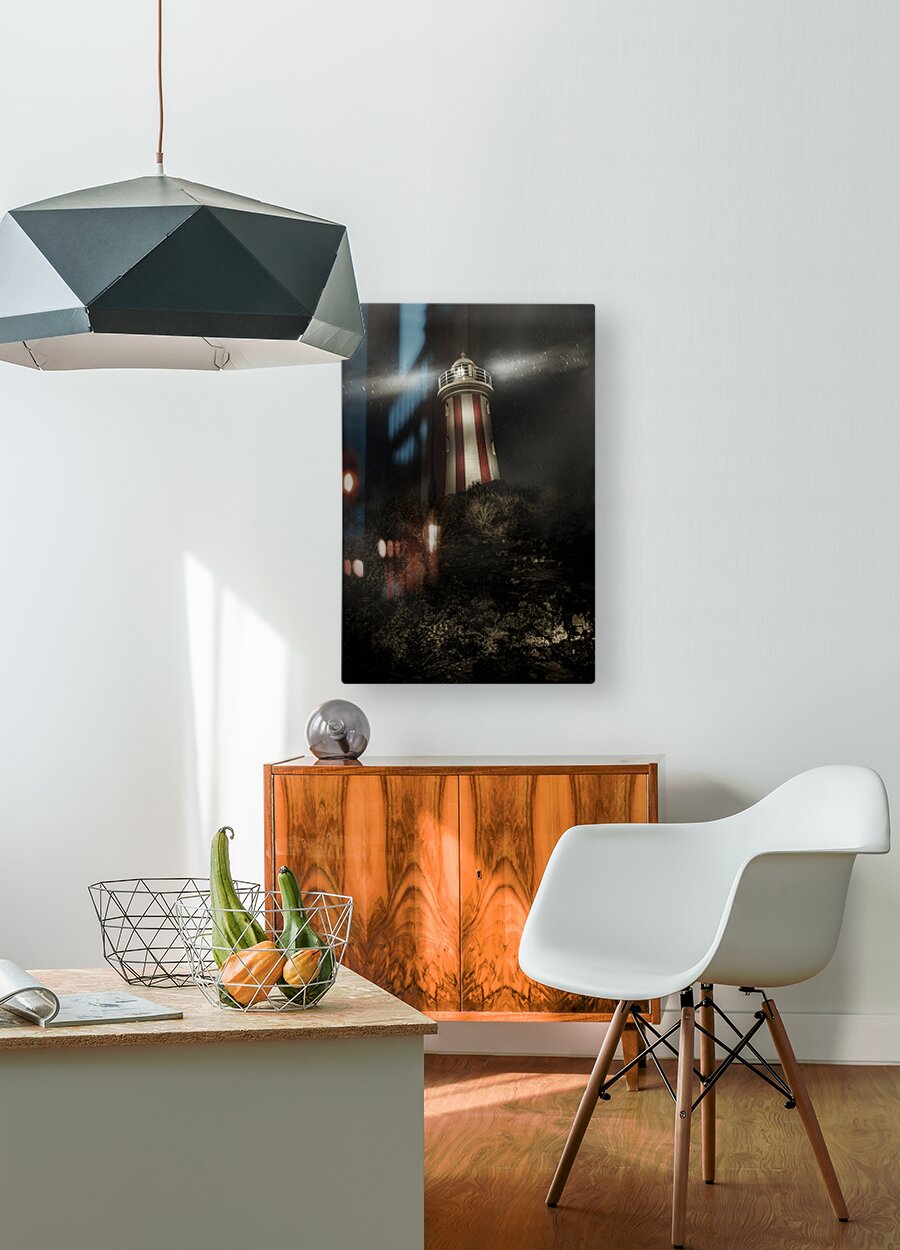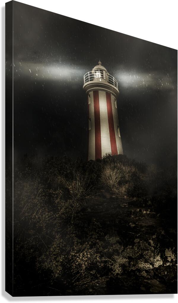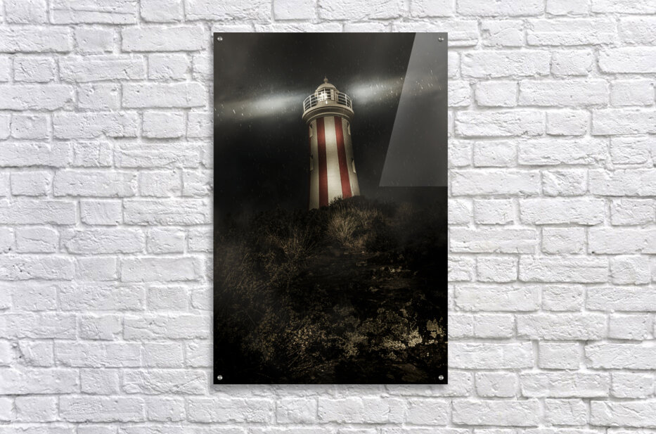 Get this artwork "Tasmania lighthouse in rain storm. Guiding light" in a framed print.