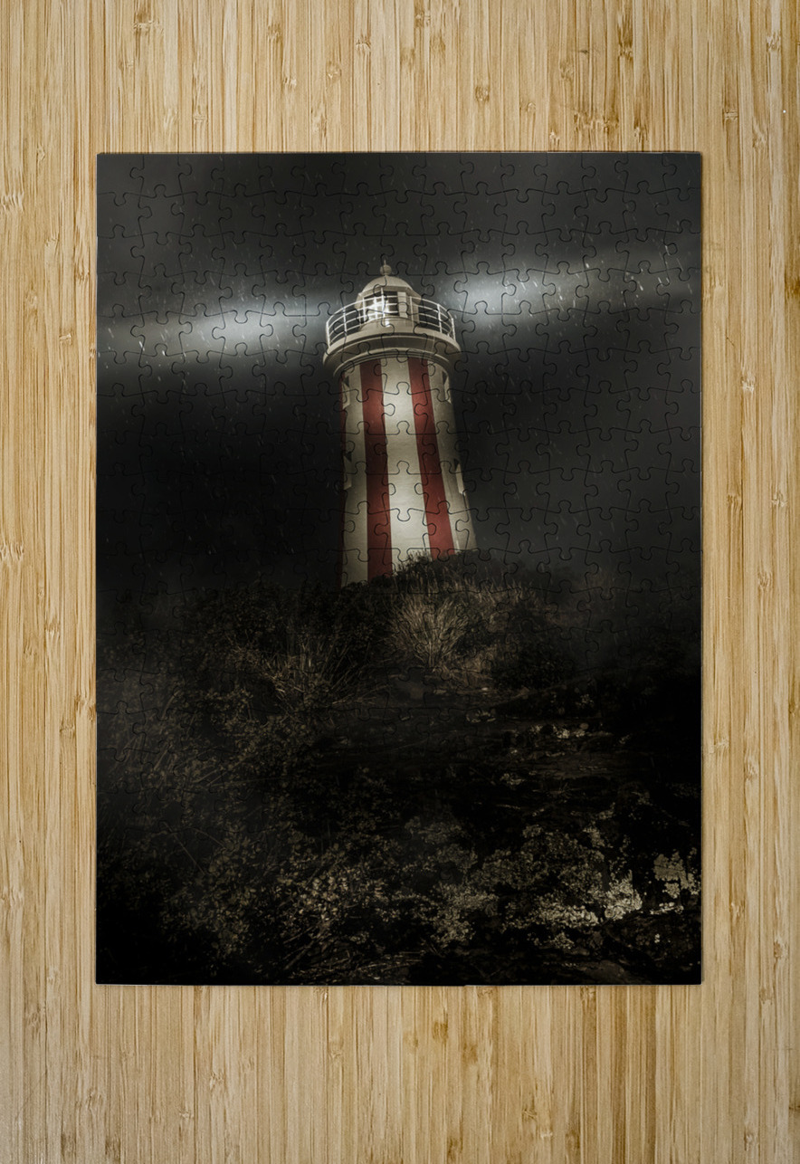 Tasmania lighthouse in rain storm. Guiding light Jorgo Puzzle printing