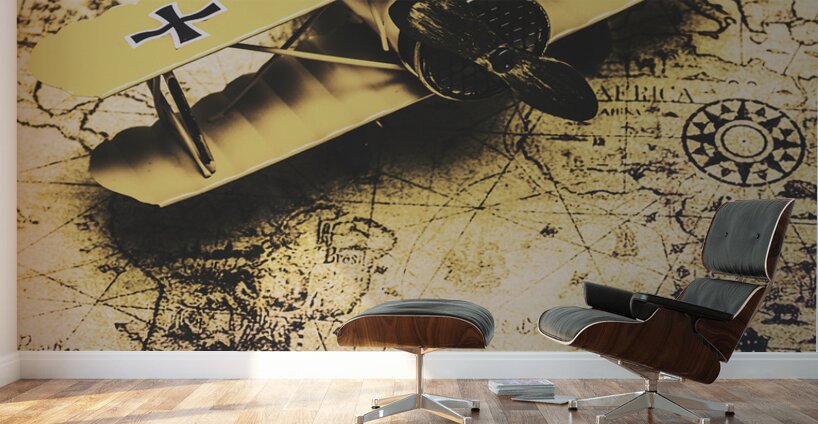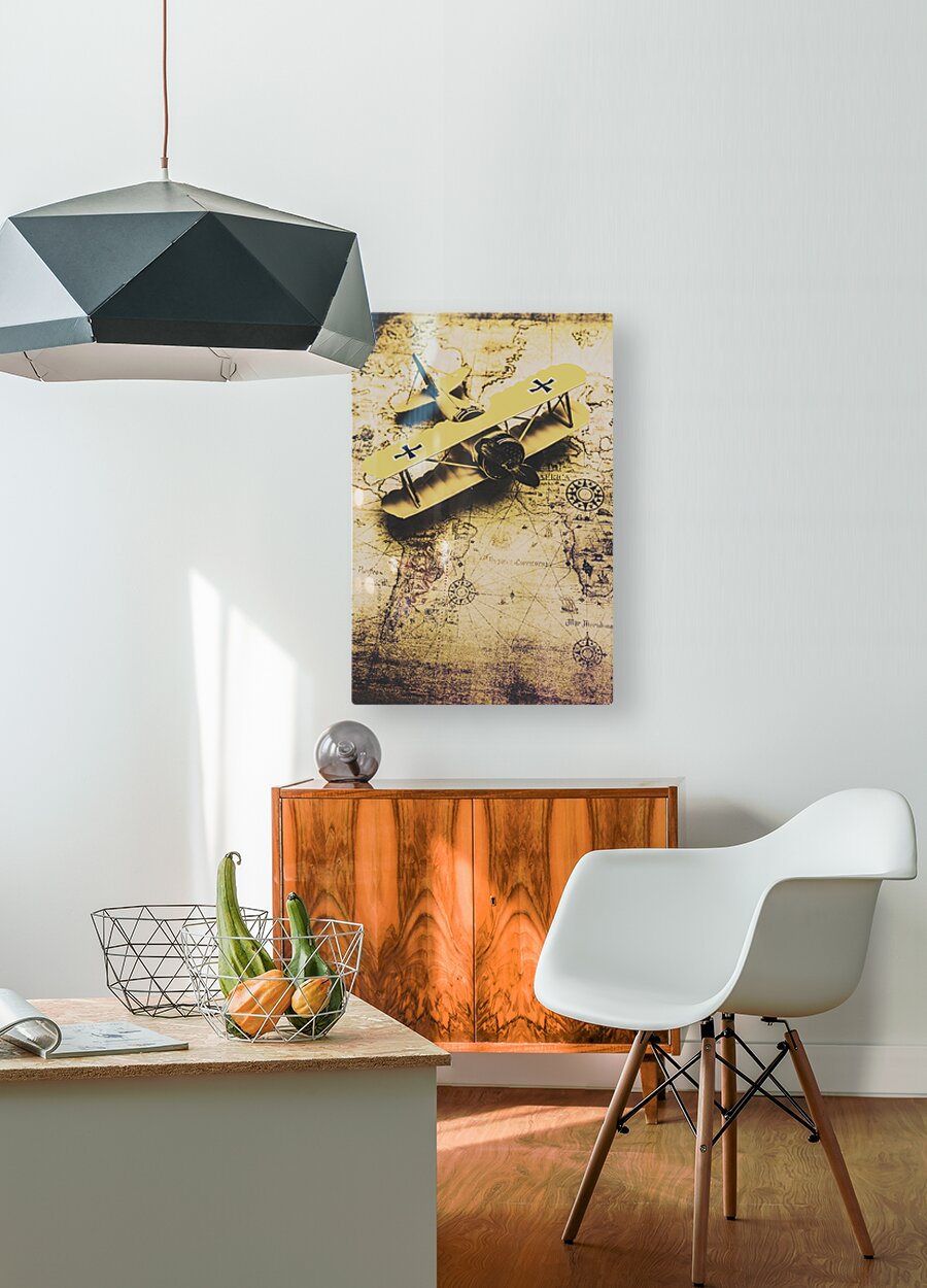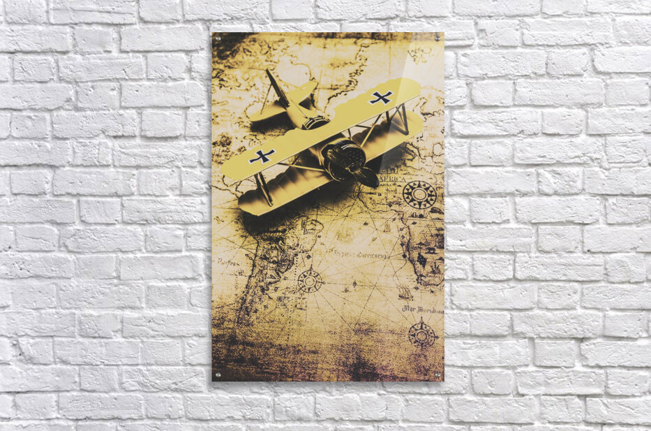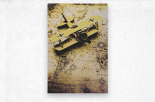 ABOUT THIS ARTWORK: ANTIQUE BIPLANE ON OLD MAP