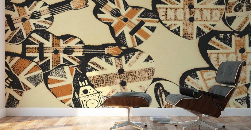 Old faded still-life photograph on British icons from vintage music memorabilia. Rocking old England