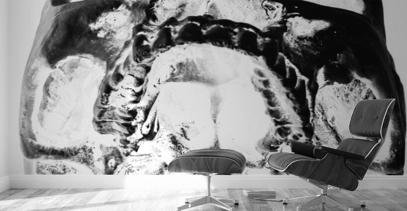 CSI x-ray art on the jawline of a skull in a negative medical exposé. Skulls and dental records