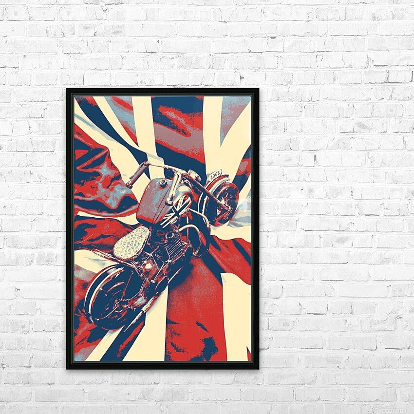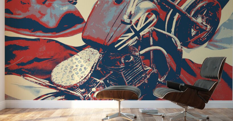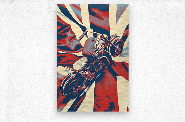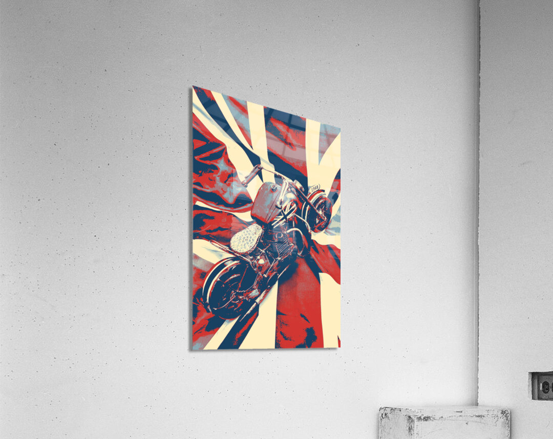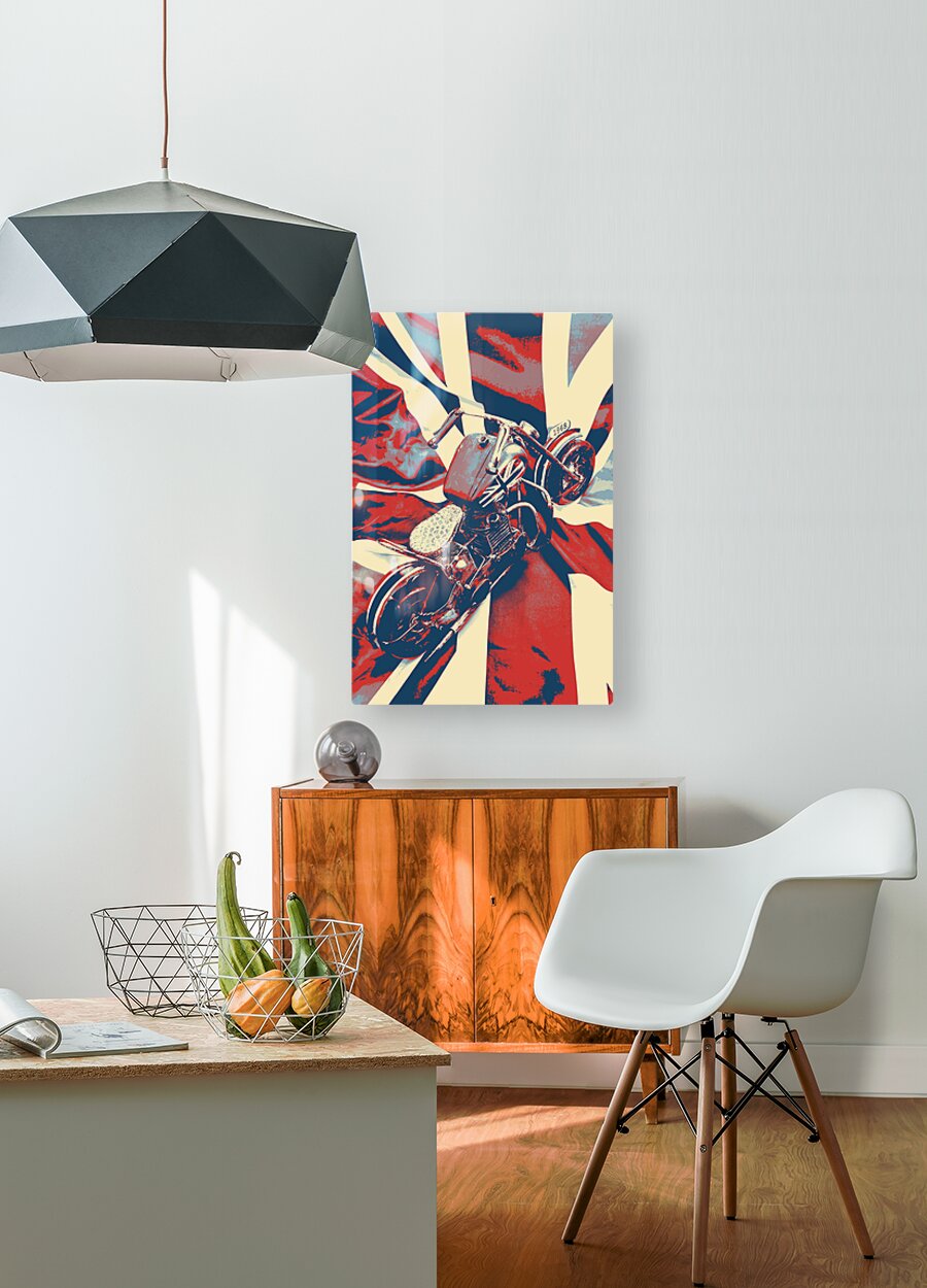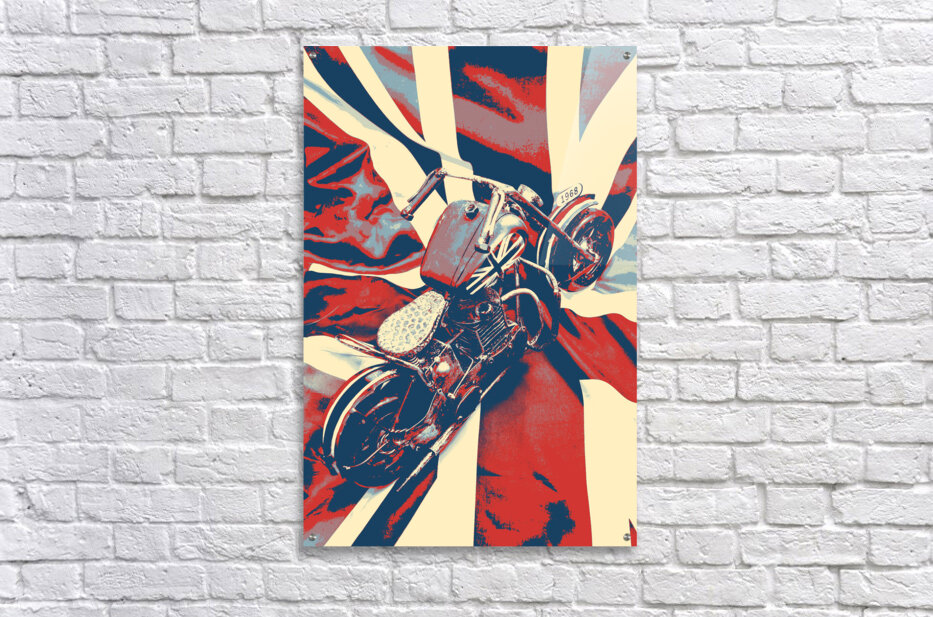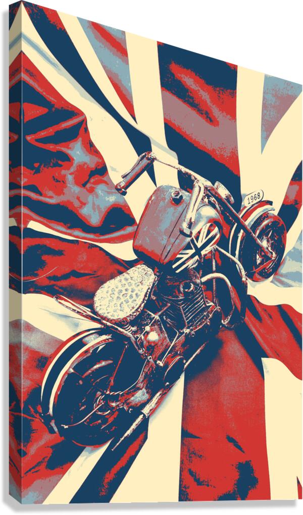 Automotive vintages with custom motorbike on Union Jack flag. Cruising GB