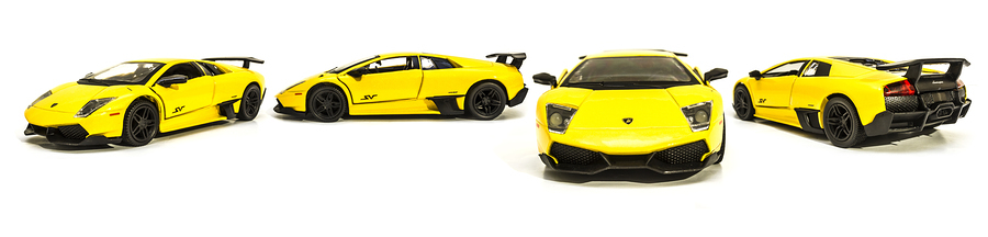 Supercar splendour in a panoramic photo of four striking yellow Lamborghini Murcielago LP 670-4