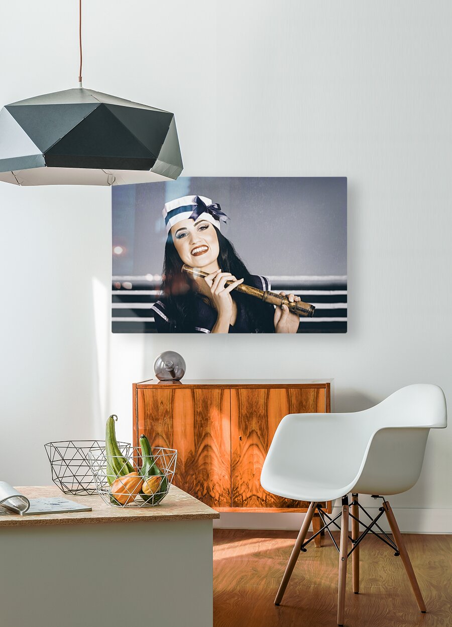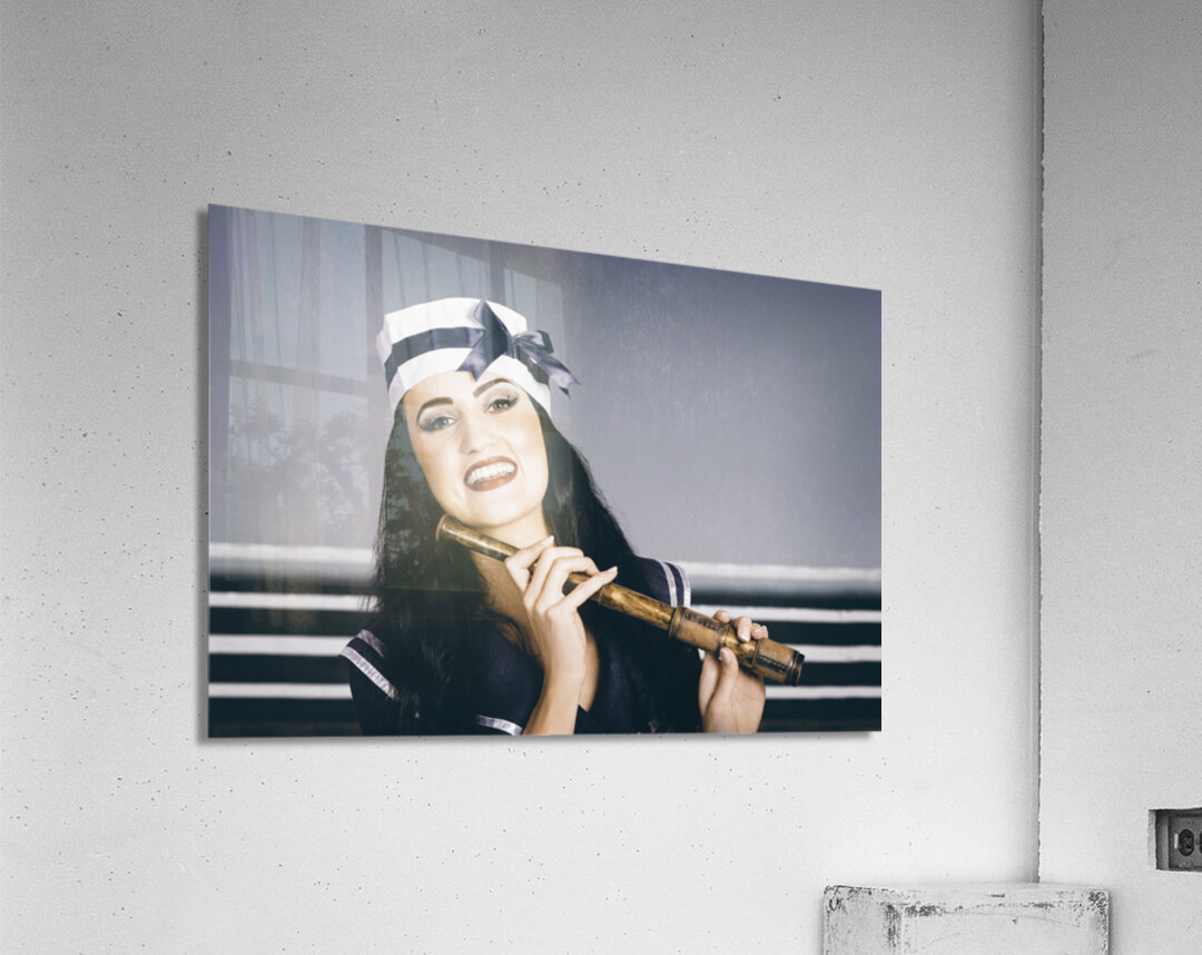 Get this artwork "Young vintage sailor girl looking out to sea" in a framed print.
