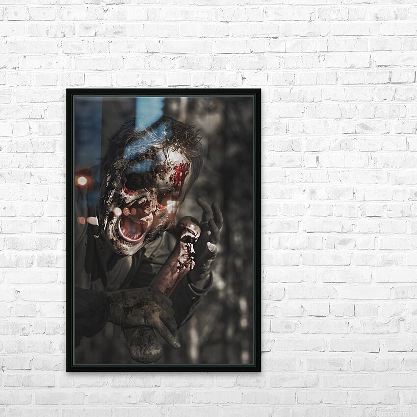 Evil male zombie screaming out in bloody fear Picture Frame Printing