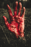 BLOOD STAINED HAND COMING OUT OF THE GROUND AT NIGHT