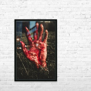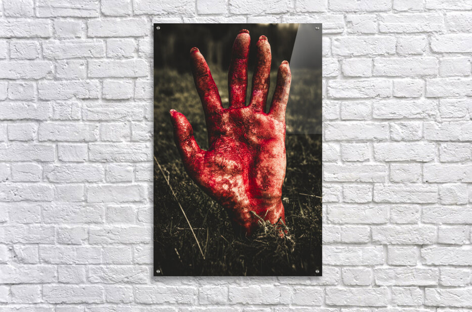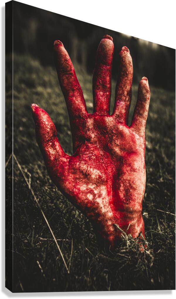 Get this artwork "Blood Stained Hand Coming Out Of The Ground At Night" in a framed print.