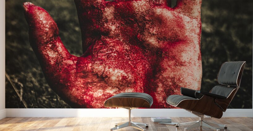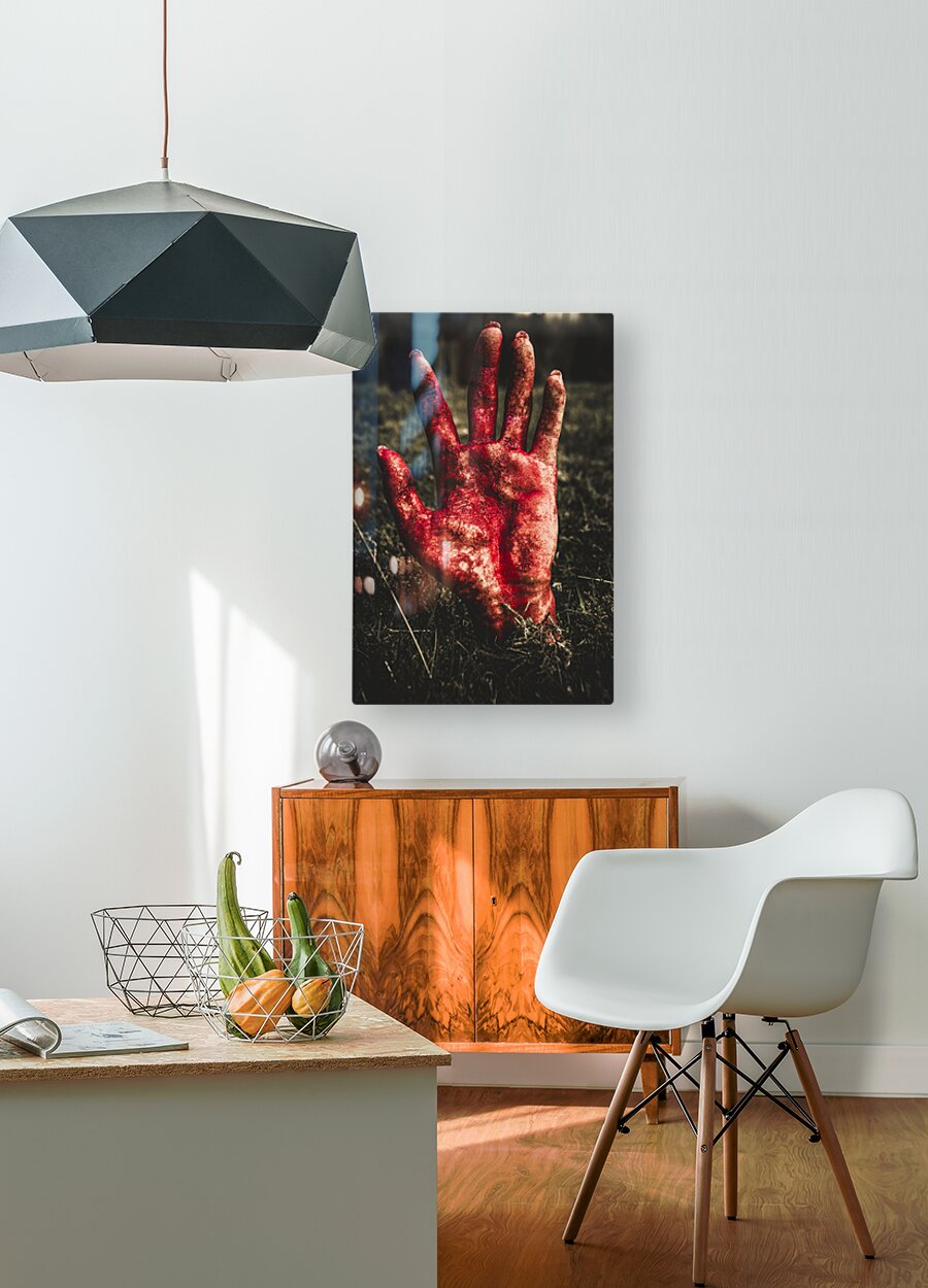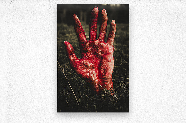 ABOUT THIS ARTWORK: BLOOD STAINED HAND COMING OUT OF THE GROUND AT NIGHT