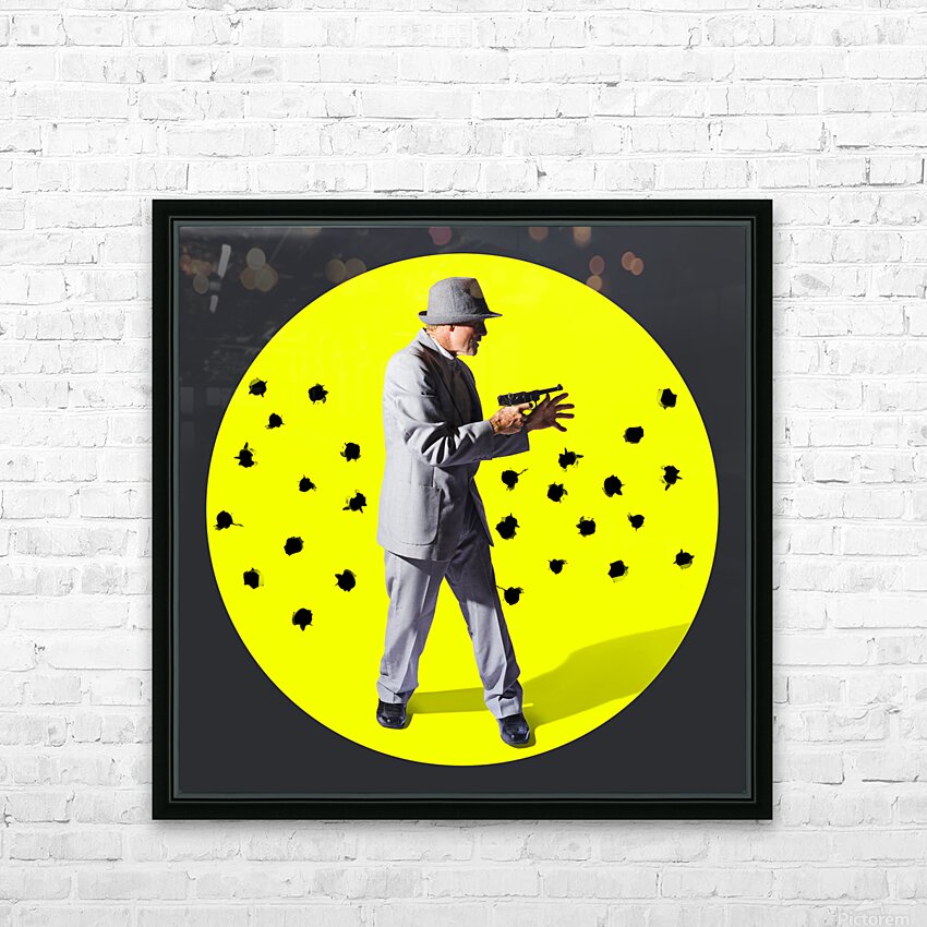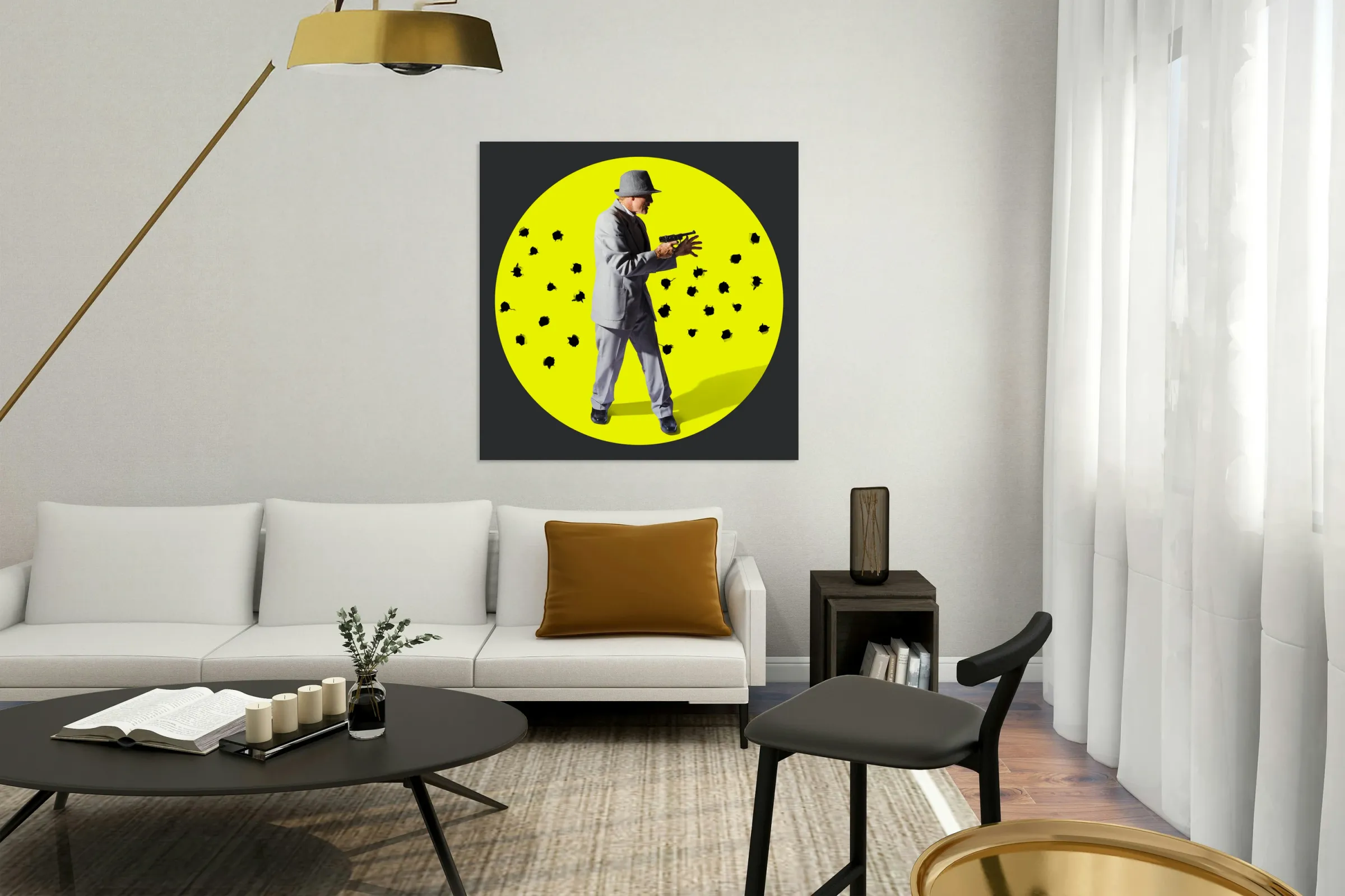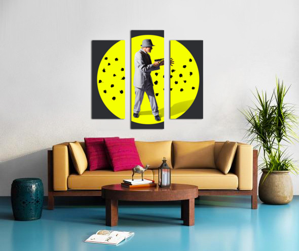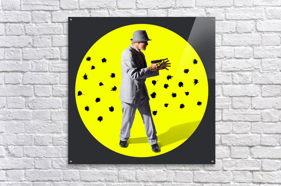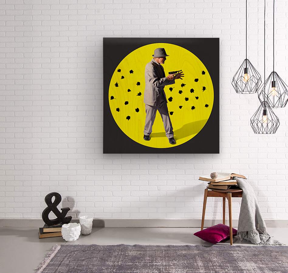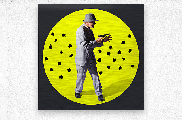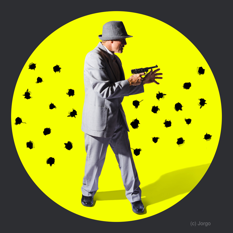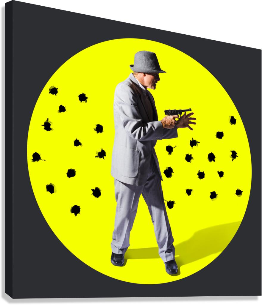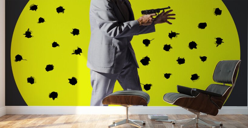 Scene of criminal intent with a private eye detective taking gunfire round on yellow