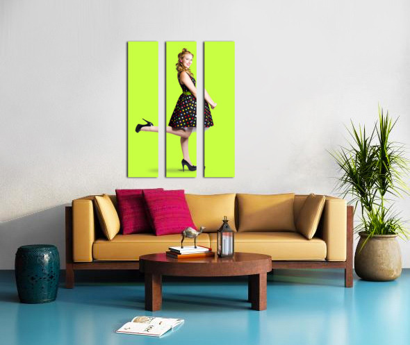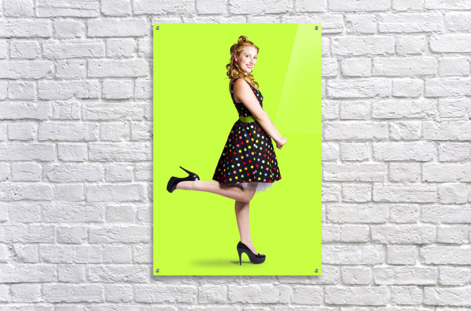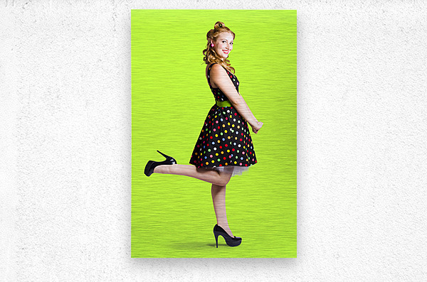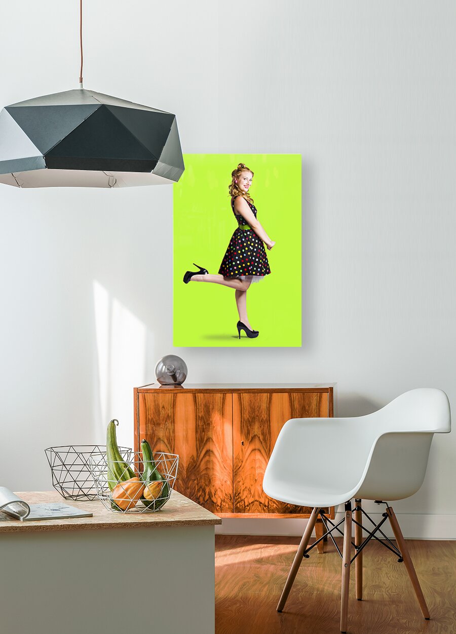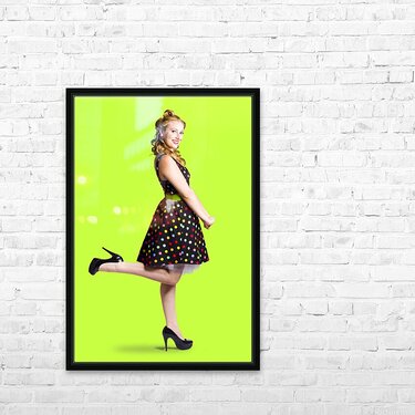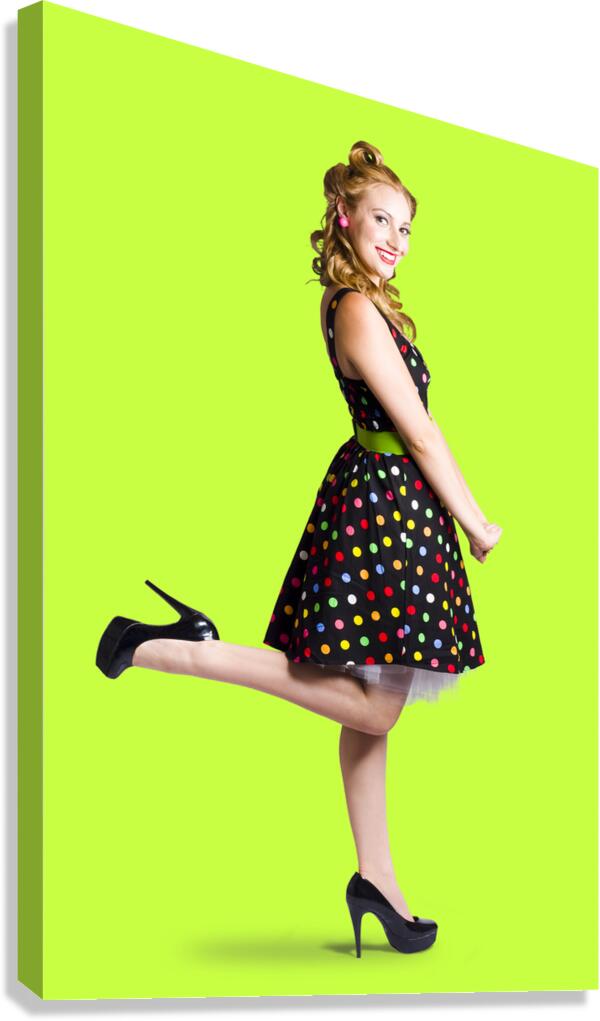 Happy woman in retro dress Picture Frame Printing