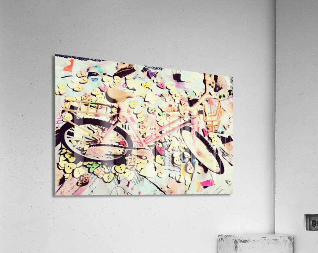Retro pop art stills on a guided magazine tour with bike travels through the heart of decorated romance. Romantic getaway
