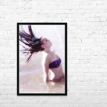 Captivating Action Portrait Of Motion And Movement As A Woman Splashes Water Around With A Hair Flick Tossing Water Droplets In The Air In Vintage Wat...[+]