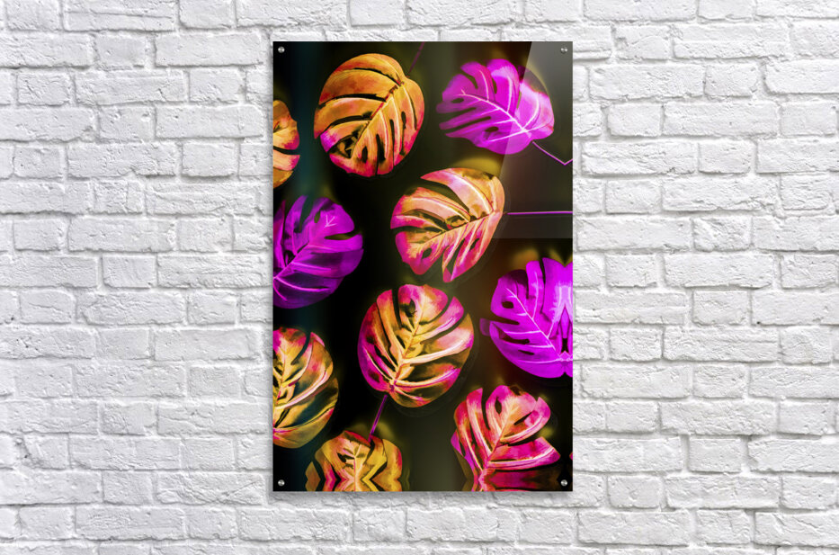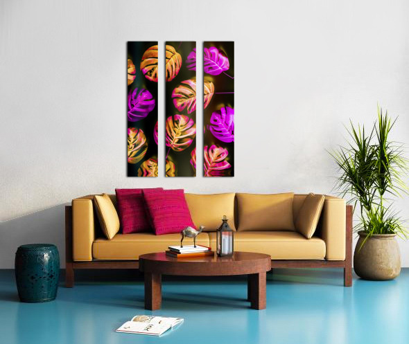 Tropical pops on a artistic scene of exotic palm tree leaves from summer moderns
