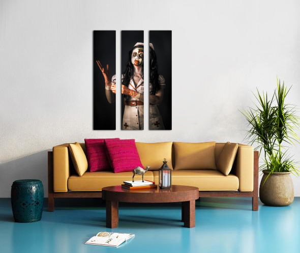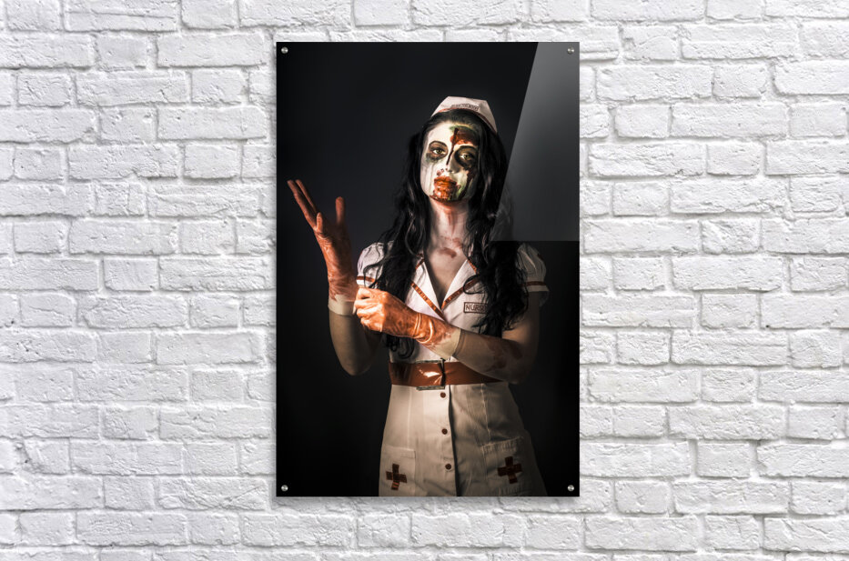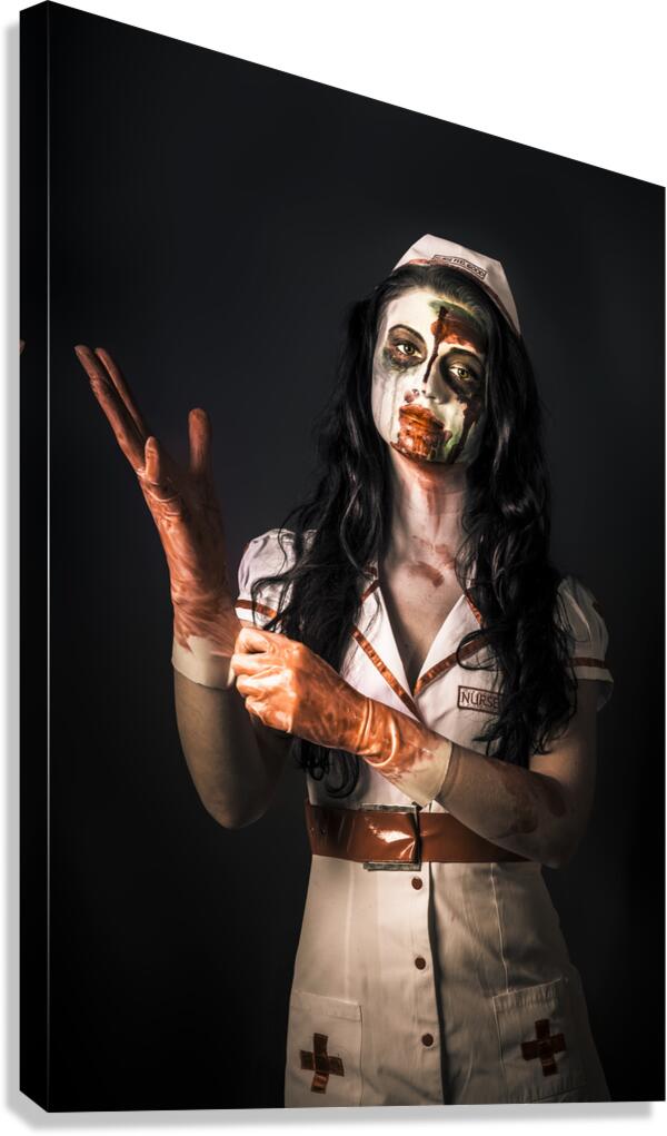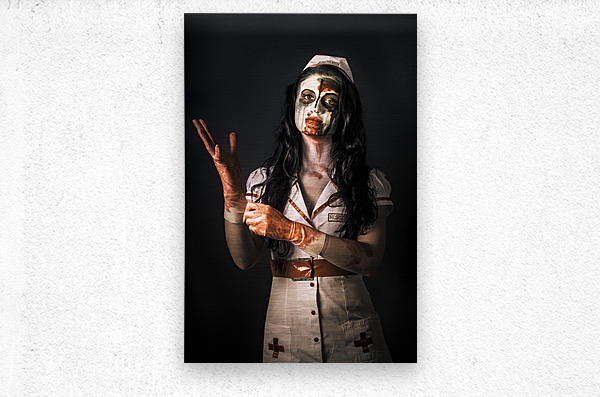 Get this artwork "Living dead health professional putting on gloves" in a framed print.