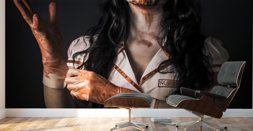 ABOUT THIS ARTWORK: LIVING DEAD HEALTH PROFESSIONAL PUTTING ON GLOVES