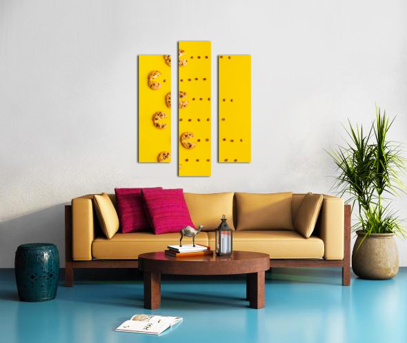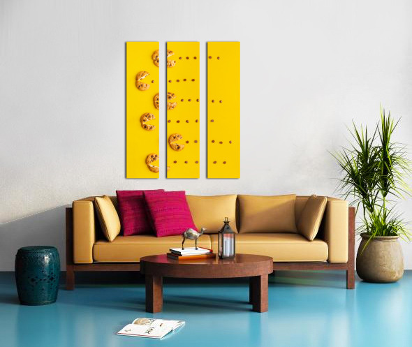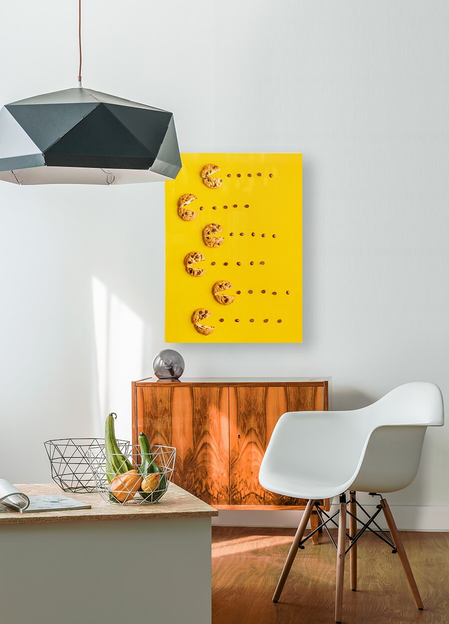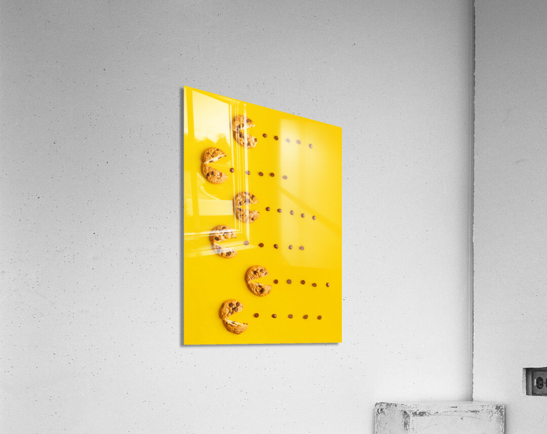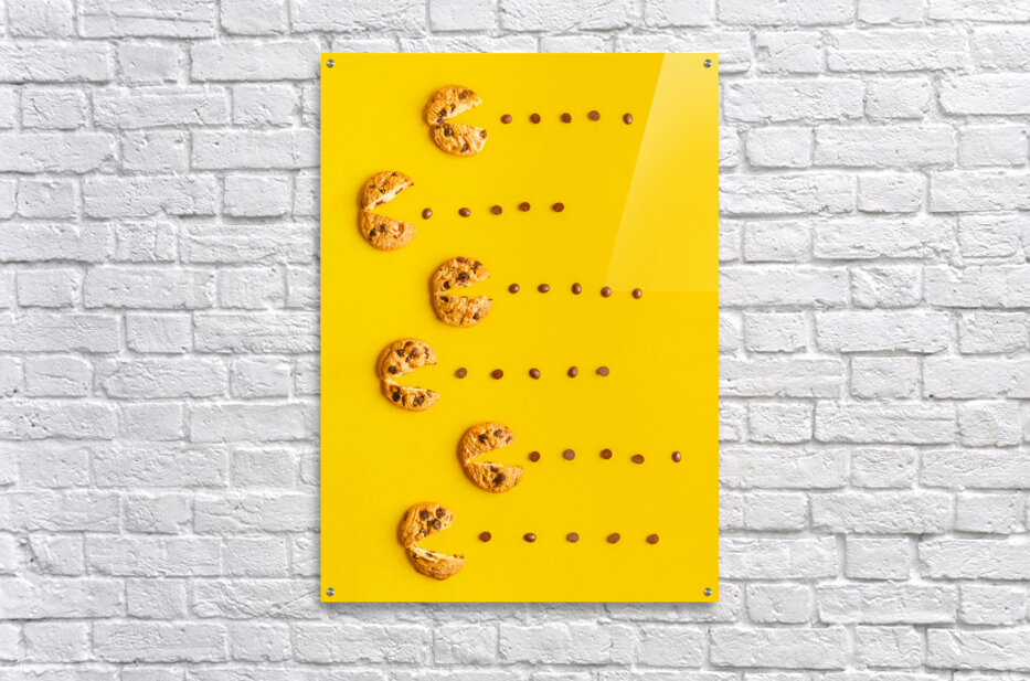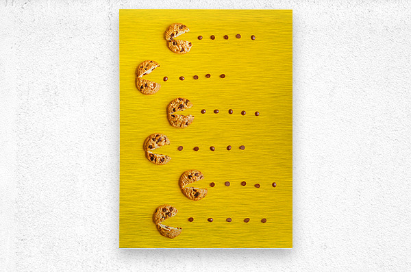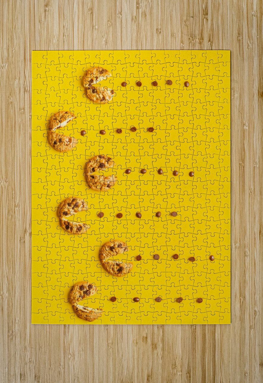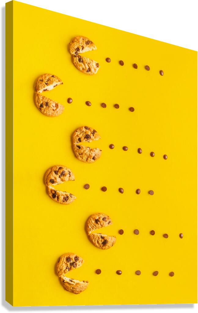 Delicious nostalgia on a 80s video game scene of hungry biscuit monsters and choc lanes