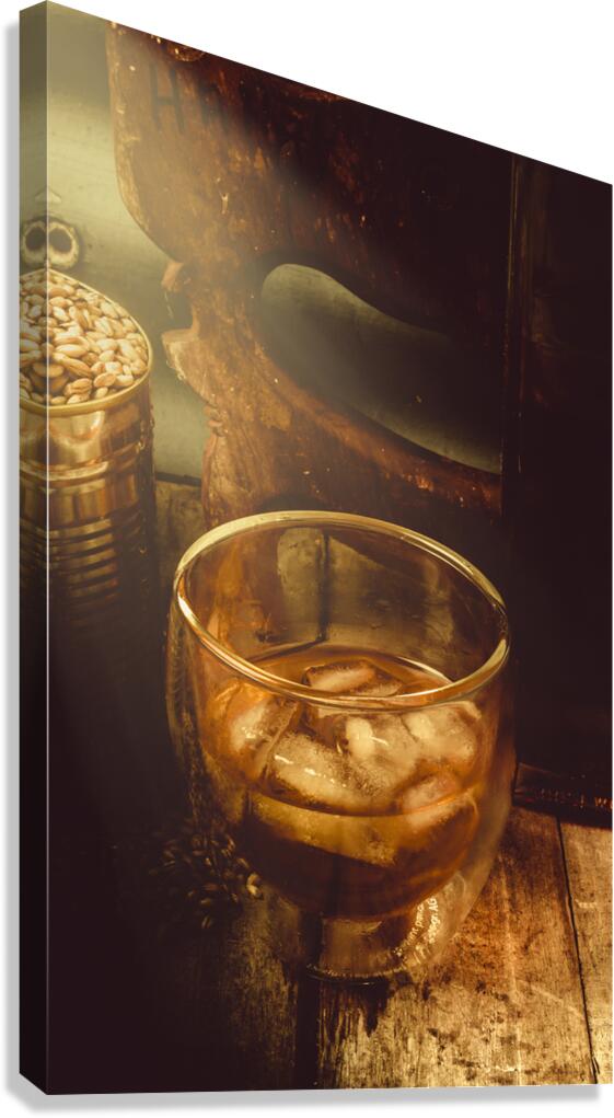 Historic still-life artwork on a rural cellar setting of wild west refreshments. Club scotch