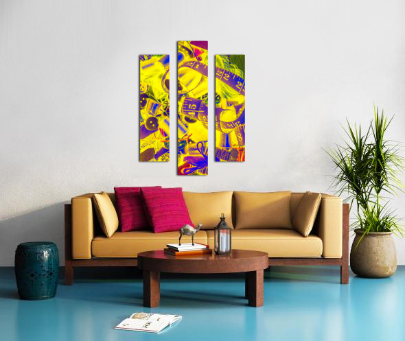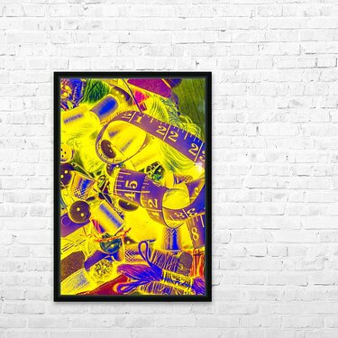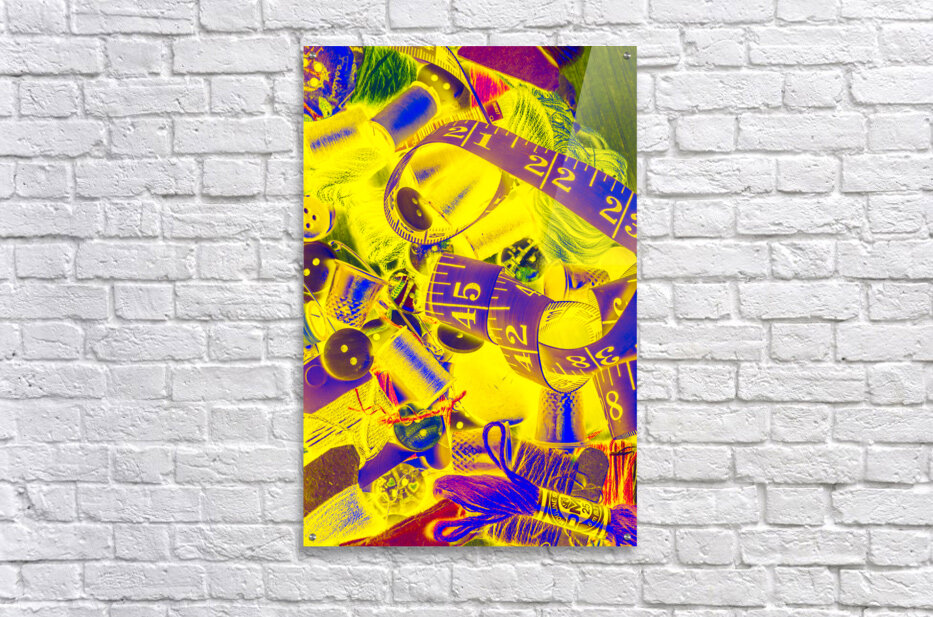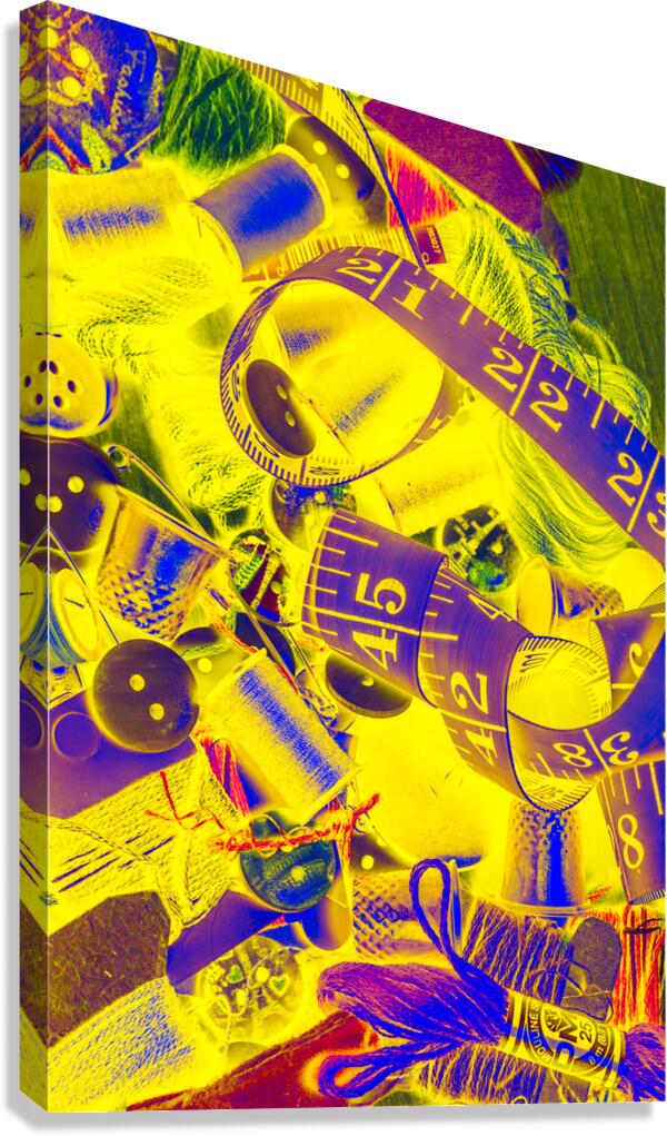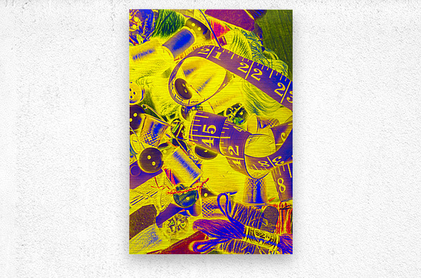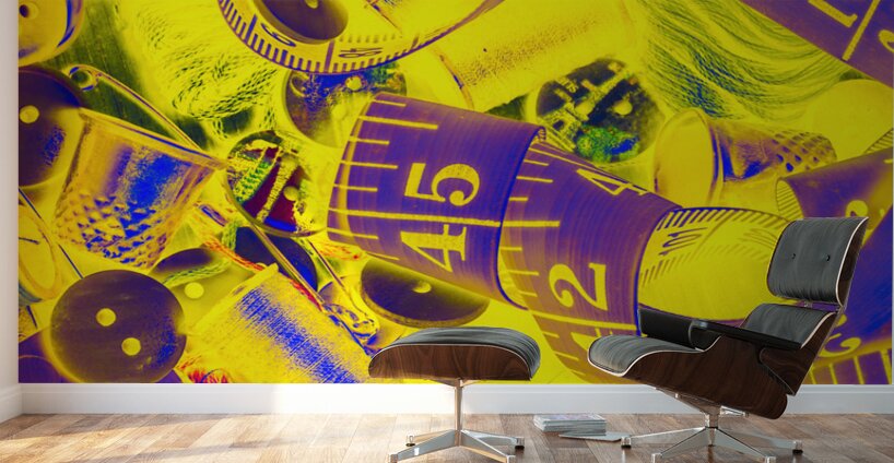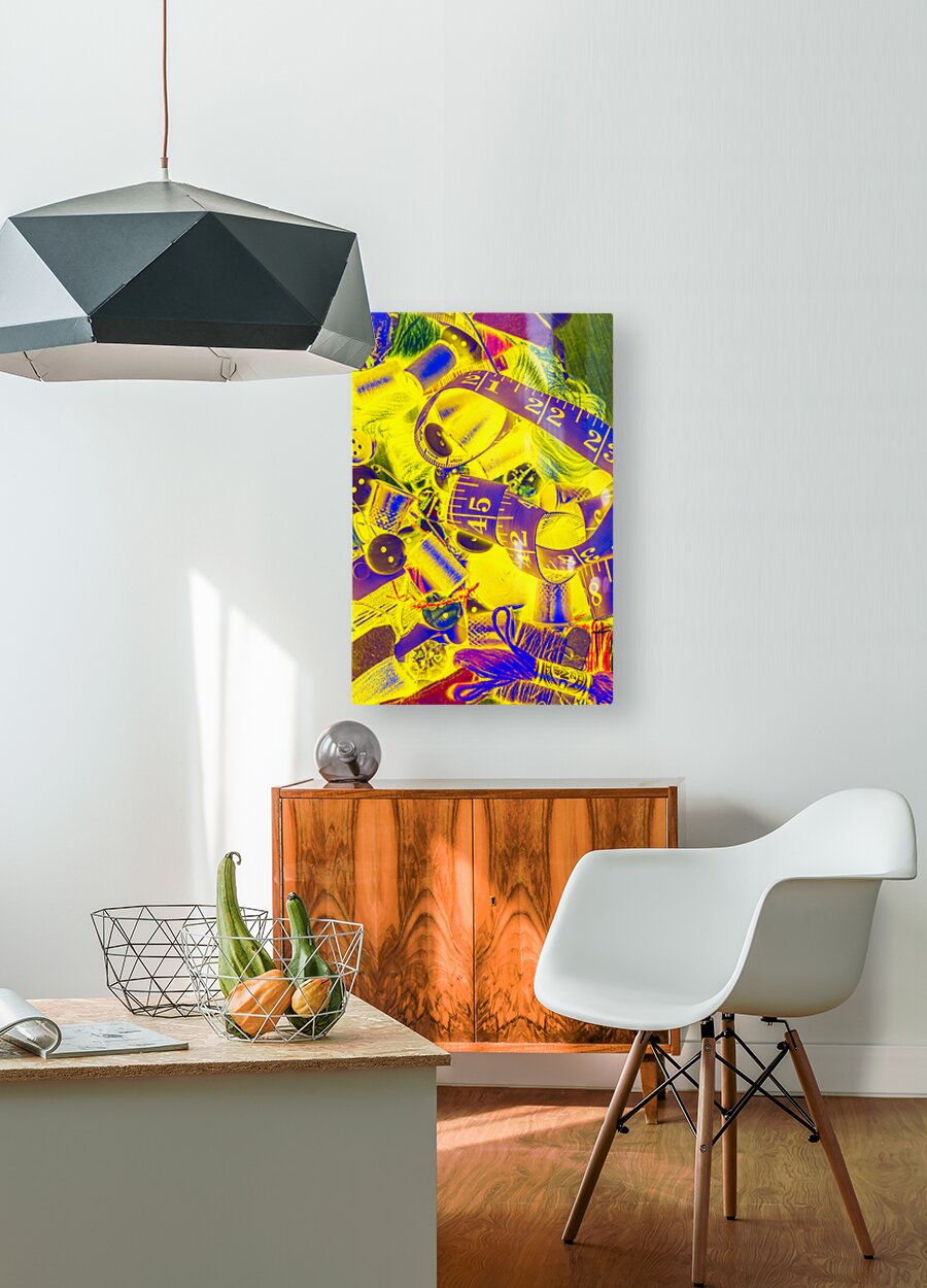 Creative pop art composition on a mix of intricate haberdashery tools in retro abstraction. Crafting colours