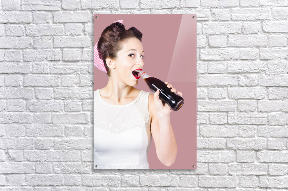 ABOUT THIS ARTWORK: OLD-FASHION POP ART GIRL DRINKING FROM SODA BOTTLE