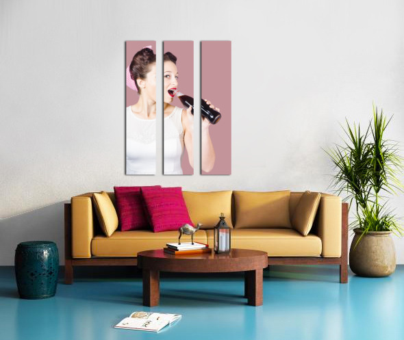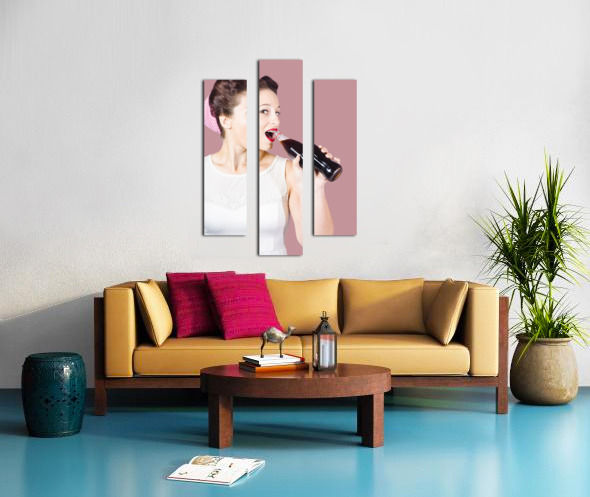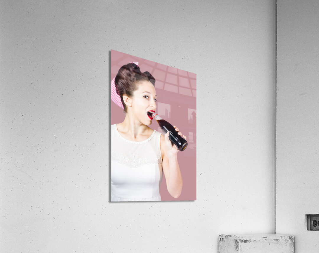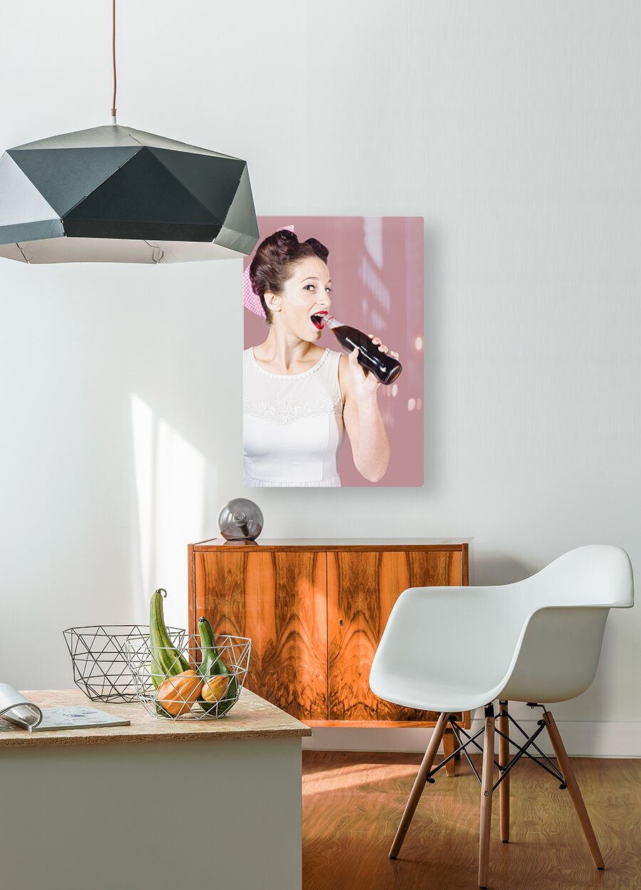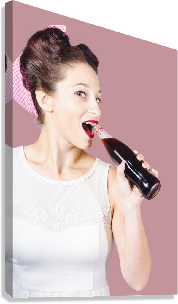 Get this artwork "Old-fashion pop art girl drinking from soda bottle" in a framed print.