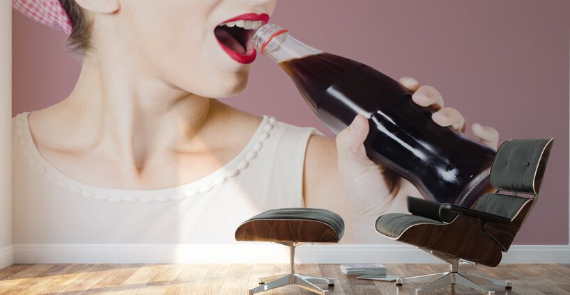 OLD-FASHION POP ART GIRL DRINKING FROM SODA BOTTLE
