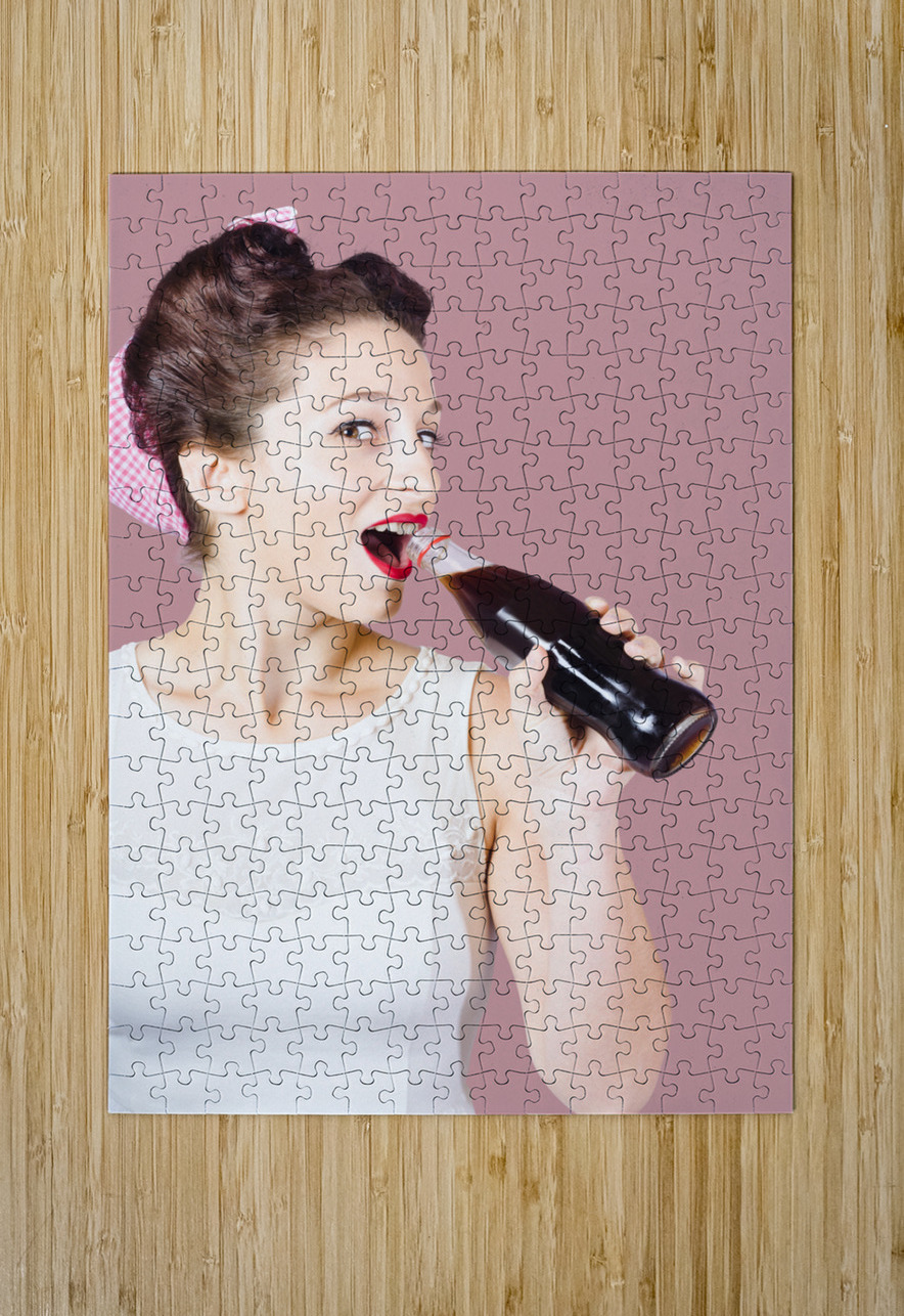 Old-fashion pop art girl drinking from soda bottle Jorgo Puzzle printing