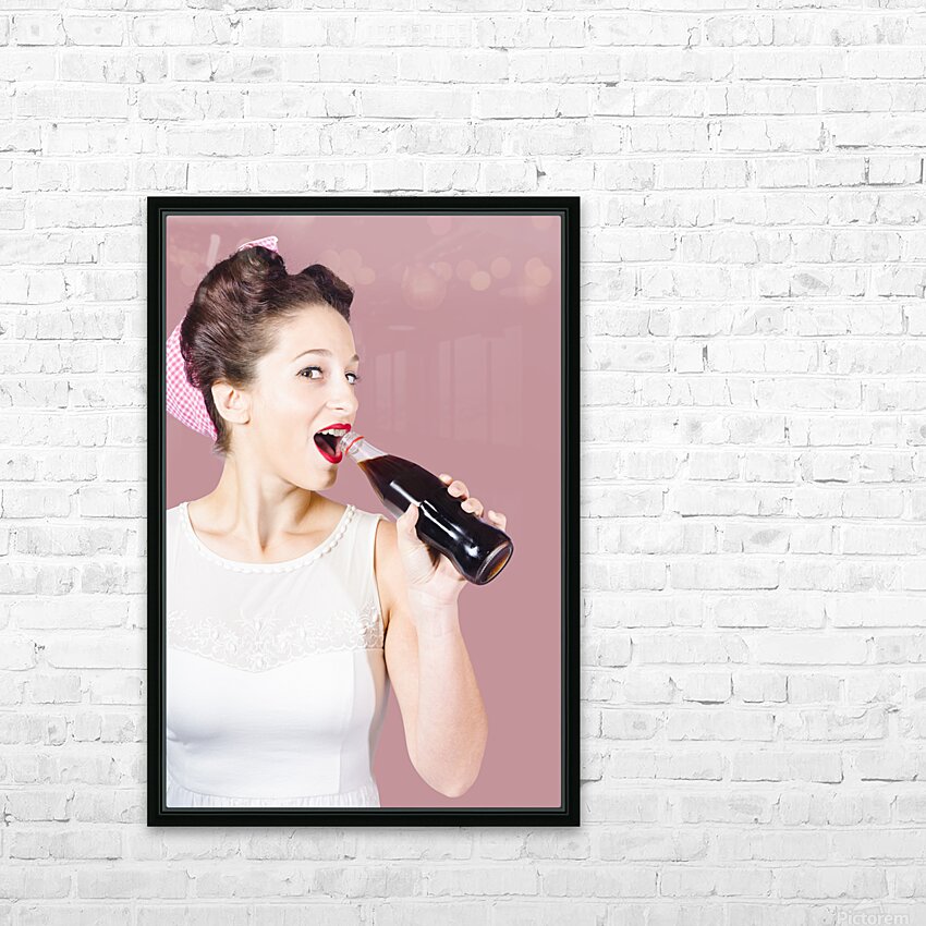 Old-fashion pop art girl drinking from soda bottle Frame print