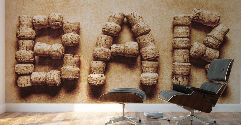 Bar sign design with champagne corks spelling out an open cellar-bration