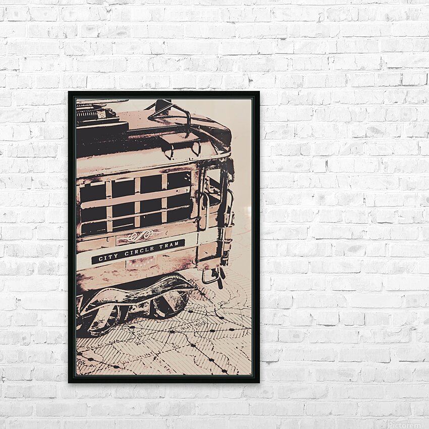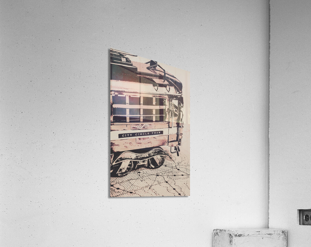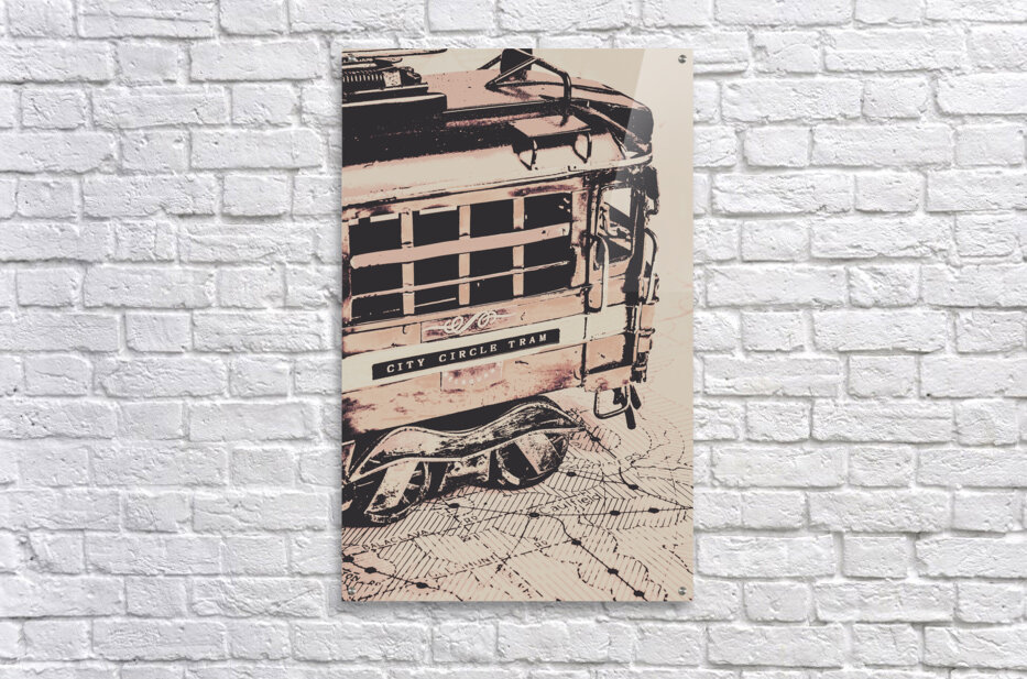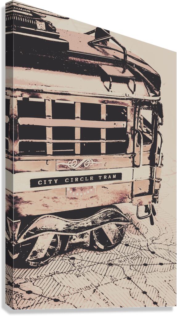Stylised pop art poster on a Melbourne transport scene of vintage tramway routes and Australian icons