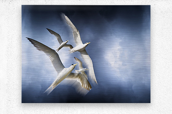 Freedom Is Represented By The Motion Movement And Graceful Flight Of Birds Soaring Or Flying High Above In The Cloudy Blue Sky Above