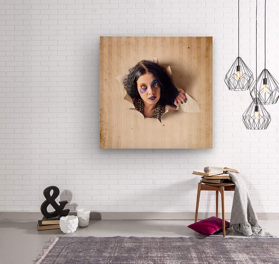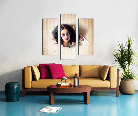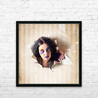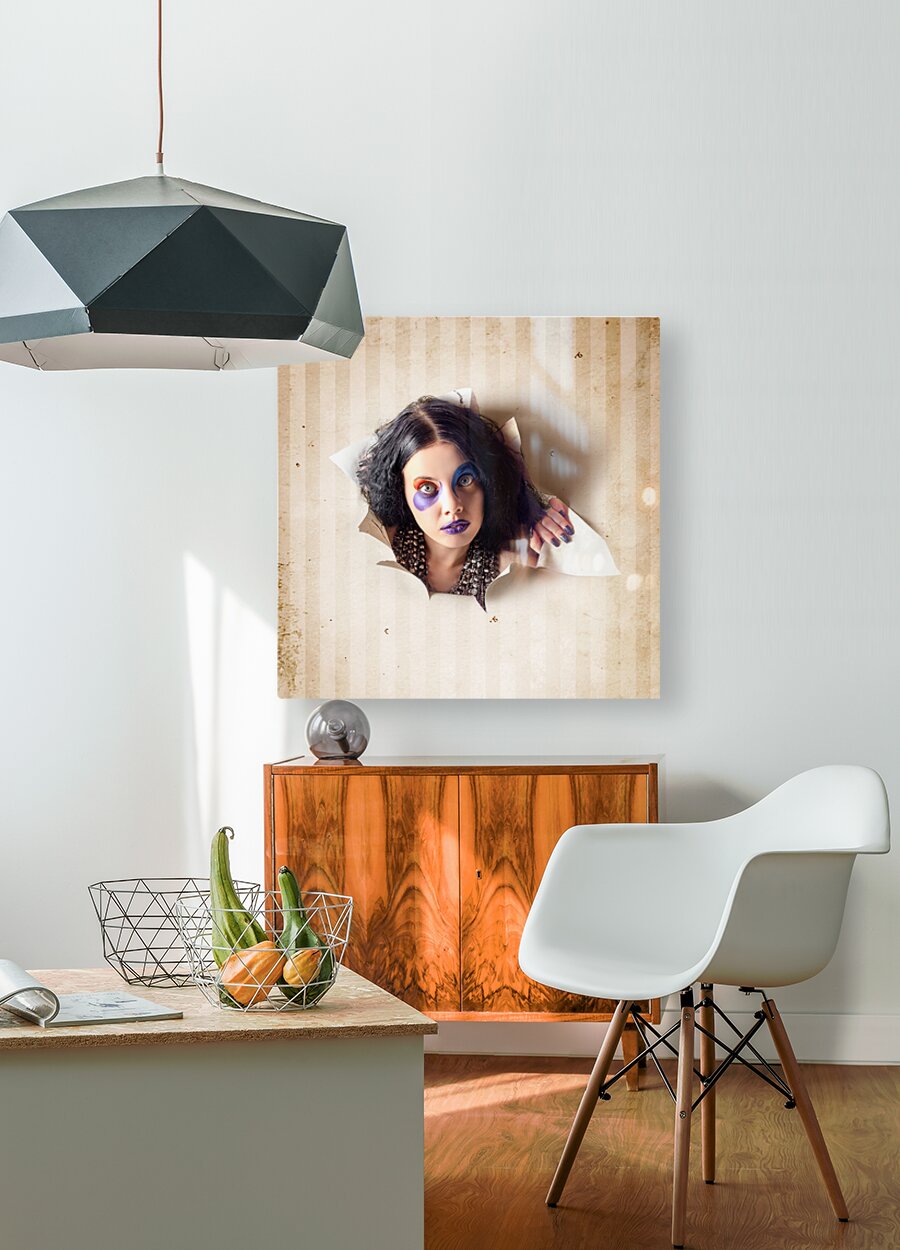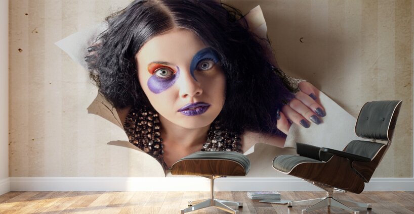 Get this artwork "Beautiful female jester breaking out of wallpaper" in a framed print.
