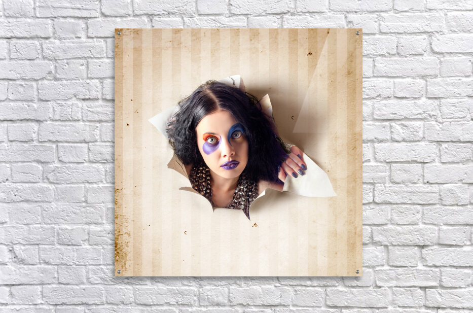 Beautiful female jester breaking out of wallpaper Picture Frame Printing
