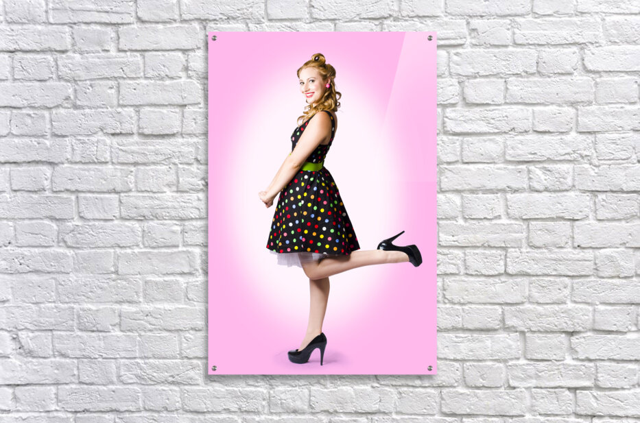 Cute Pin-Up Style Fashion Model In Retro Dress Picture Frame Printing