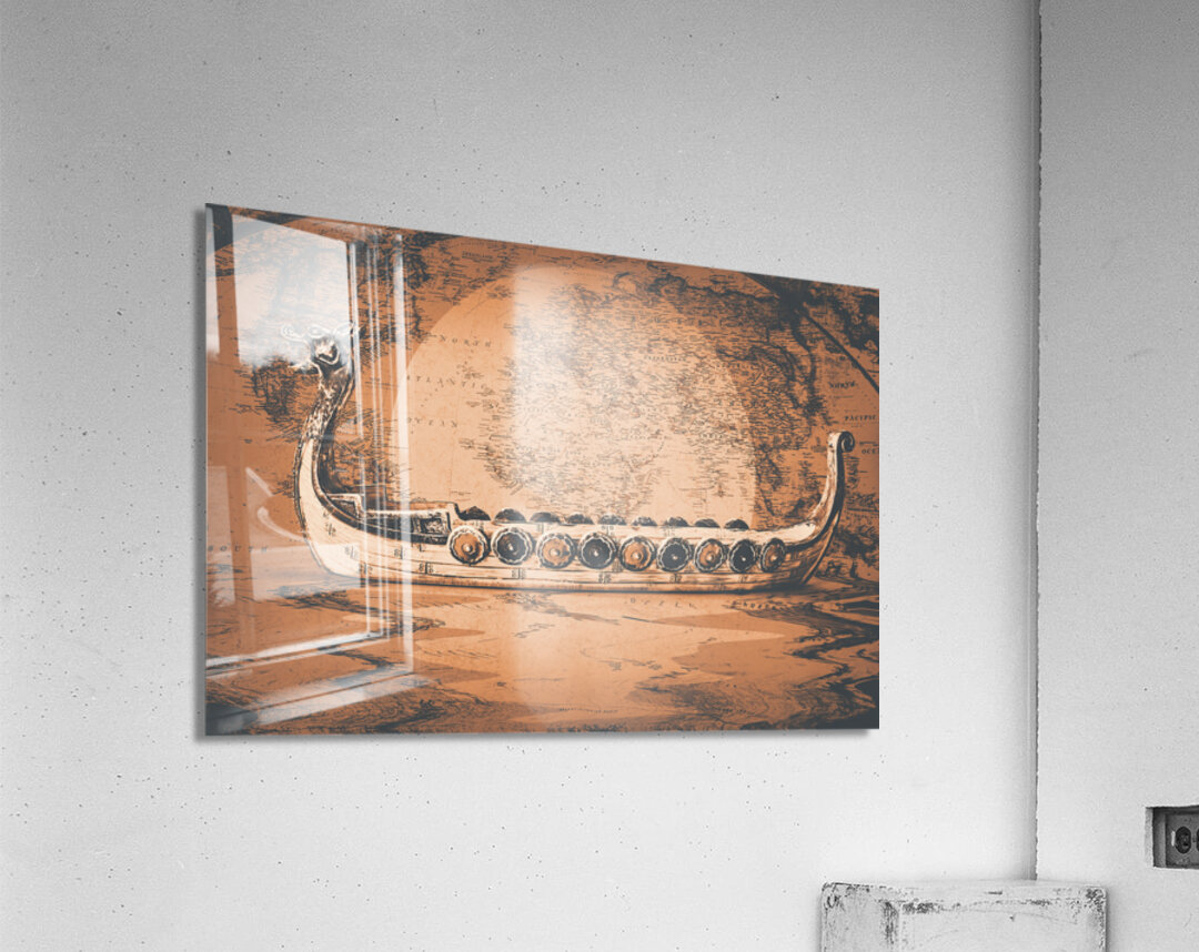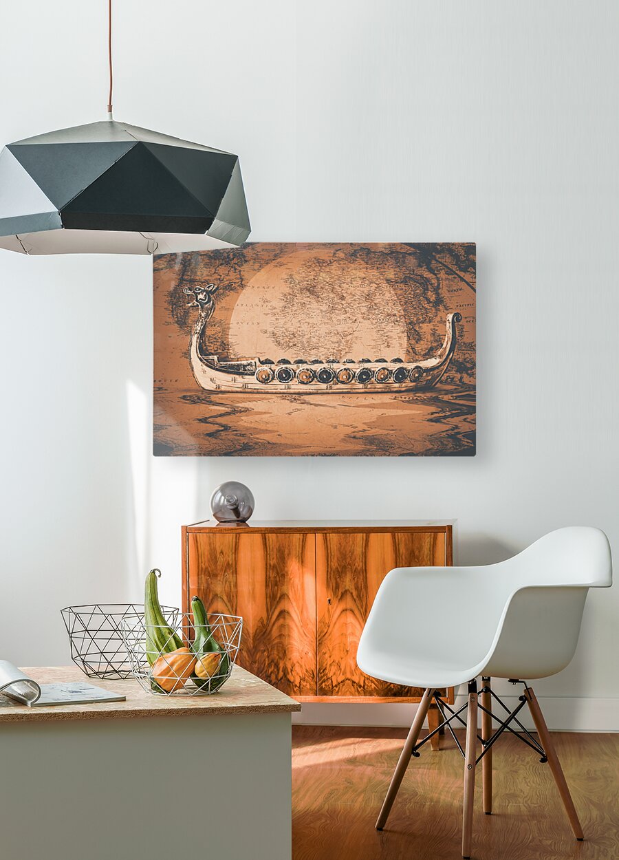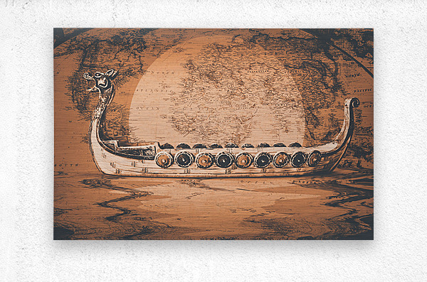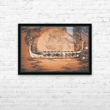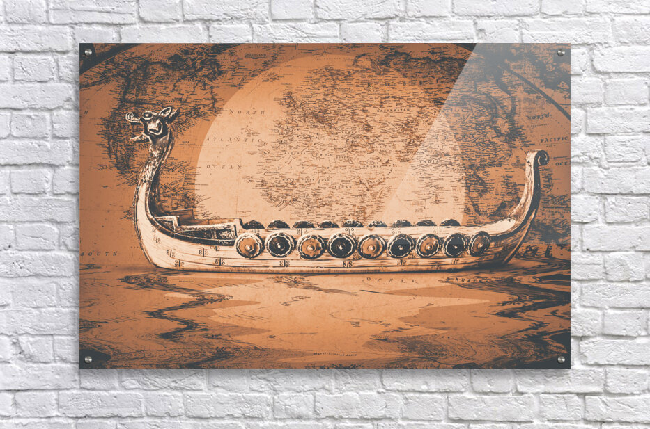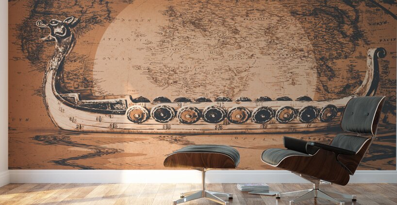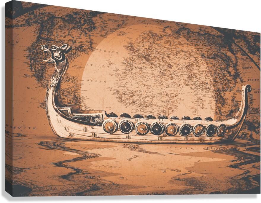 A flood of Scandinavian mythology with ancient beast boats sailing plotted atlas routes. Nordical