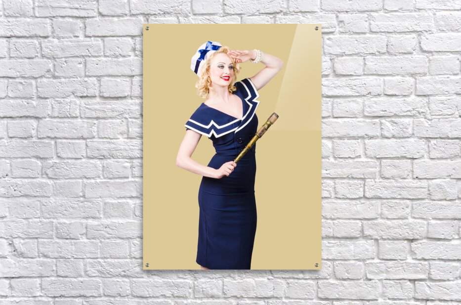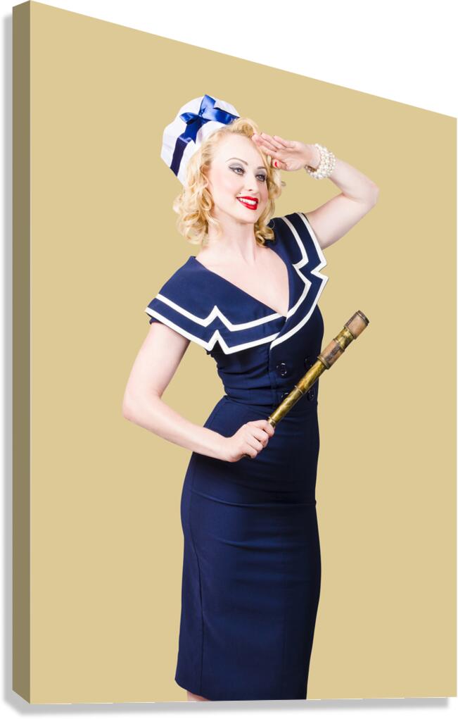 Get this artwork "Sailor girl pin-up looking out to sea" in a framed print.