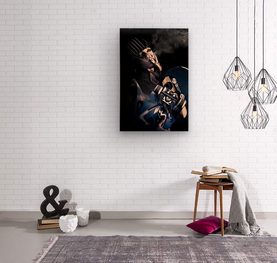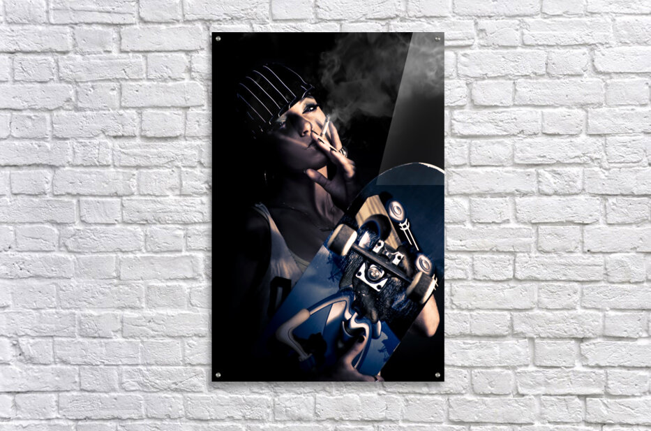 Cool Smoking Woman With Skateboard Picture Frame Printing