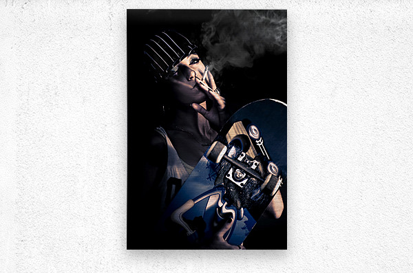 ABOUT THIS ARTWORK: COOL SMOKING WOMAN WITH SKATEBOARD