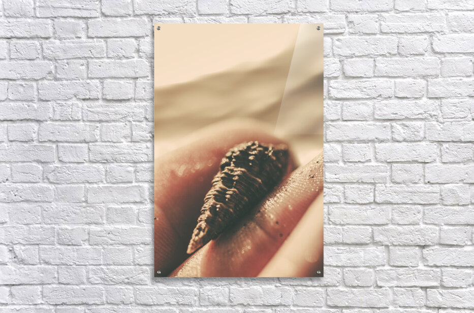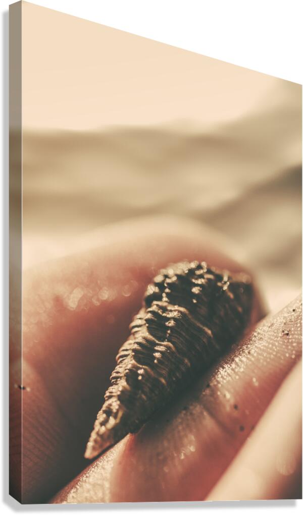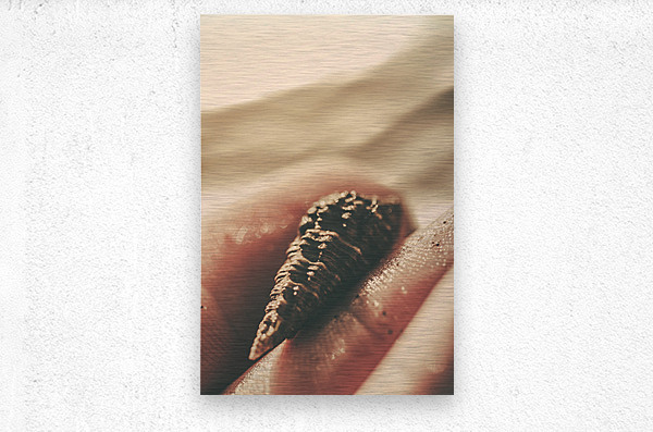 Tourist engaged in a visual delight of the senses while gently examining a sea shell at a Queensland beach location. Natures fingerprint