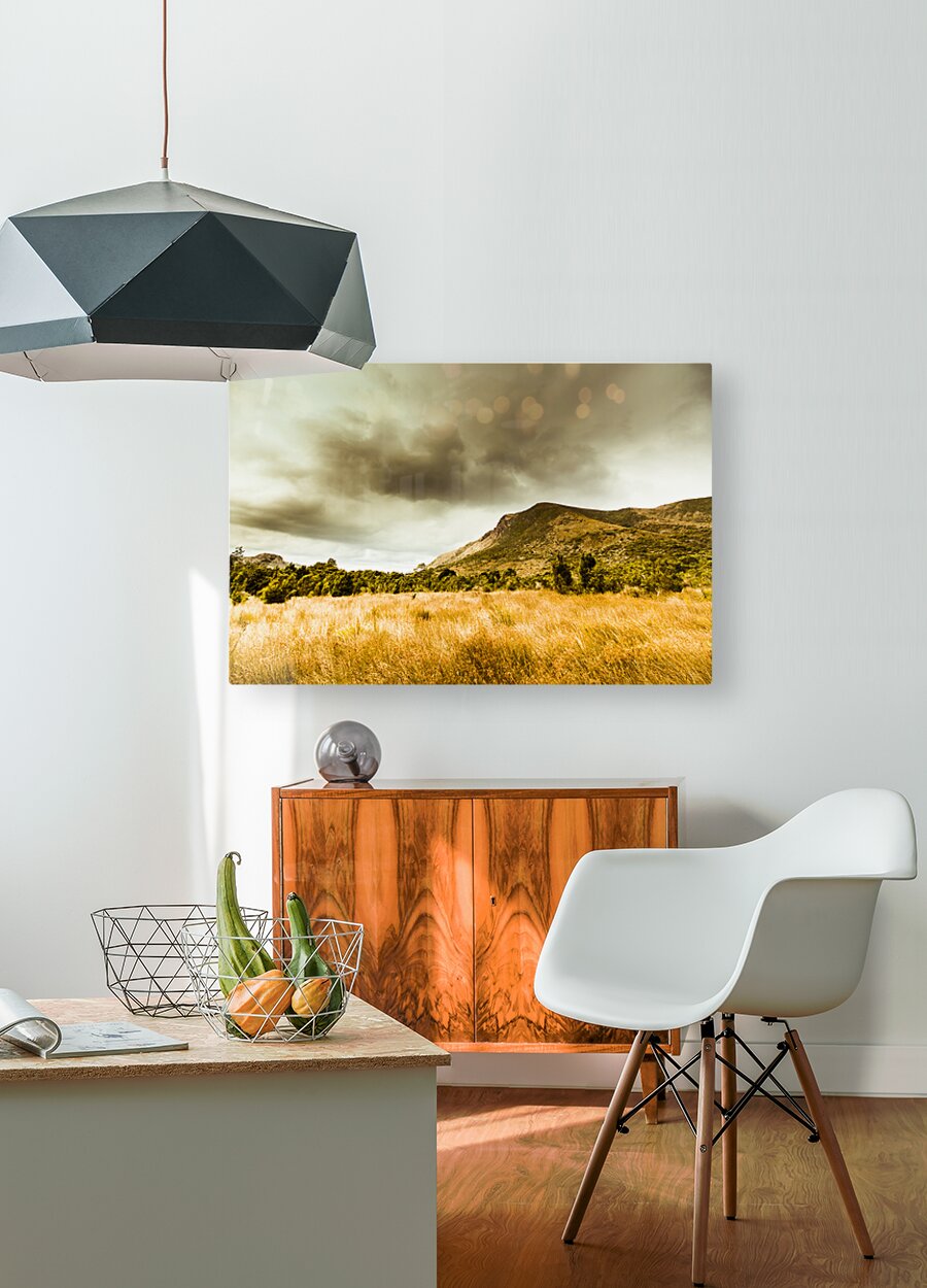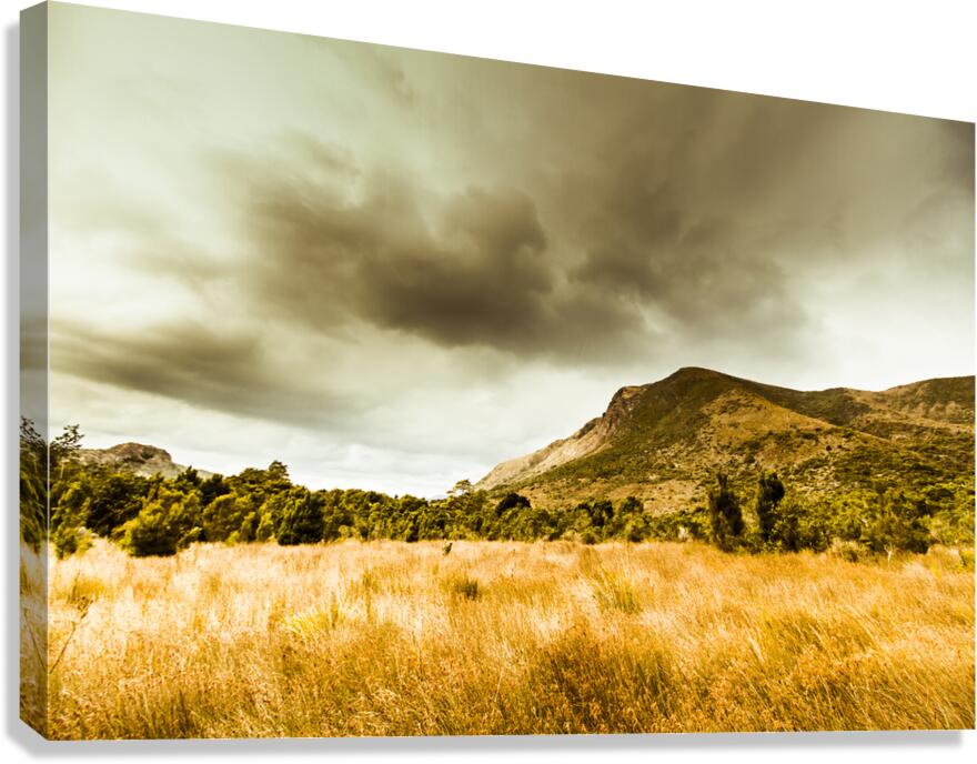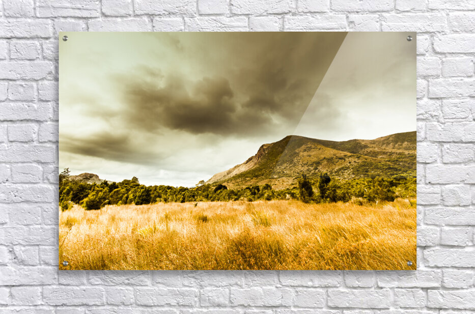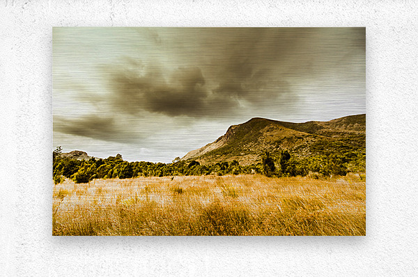 Dry tasmanian winter background with overcast clouds over mountainous regions. Gormanston Tasmania Australia