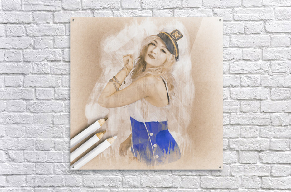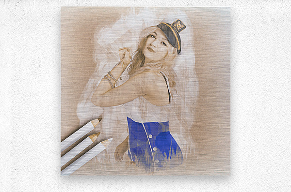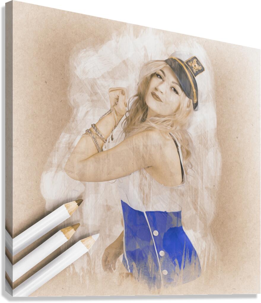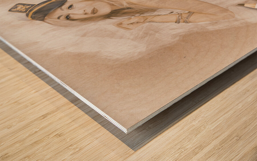 Artistic pencil drawing of a sailor pinup woman  Wood print