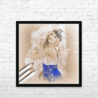 Artistic pencil drawing of a sailor pinup woman Frame print