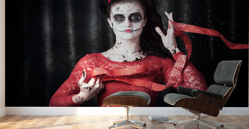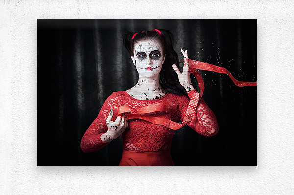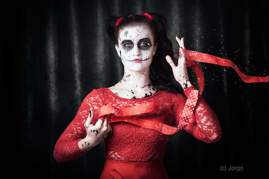 Scary dead geisha doll with peeling and weathered face making a play on magic when releasing the life force energy of a souls spirit into the afterlif...[+]